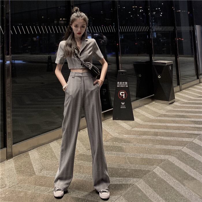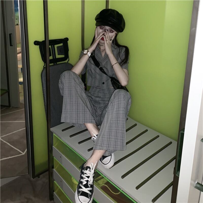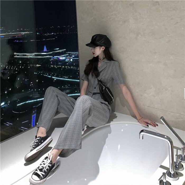 レトロスモールスーツ2020ネットレッドチェック柄スーツジャケット女性ブラウススタイルハイウエストルーズカジュアルパンツスーツ YY-ファッション40665249173
