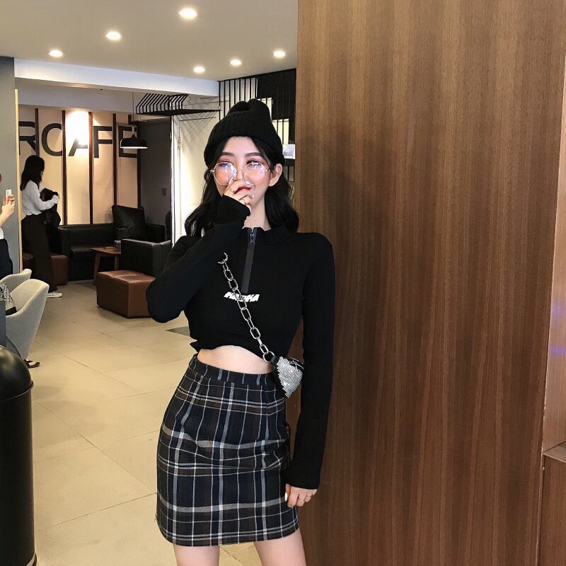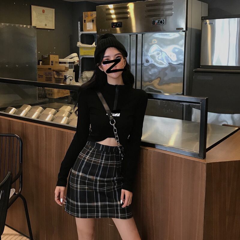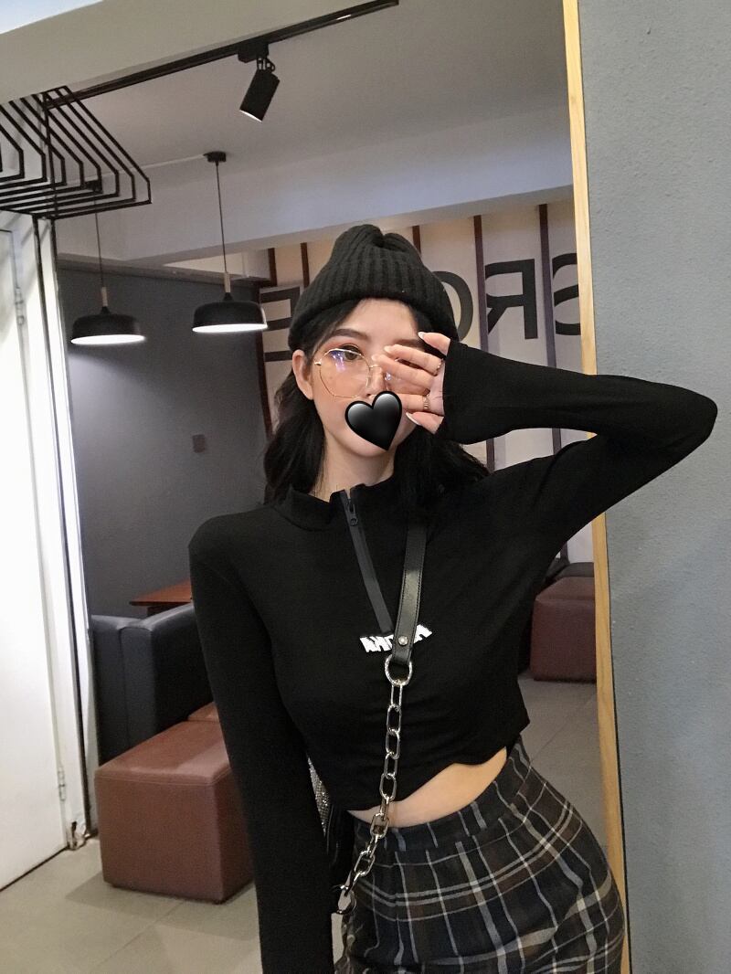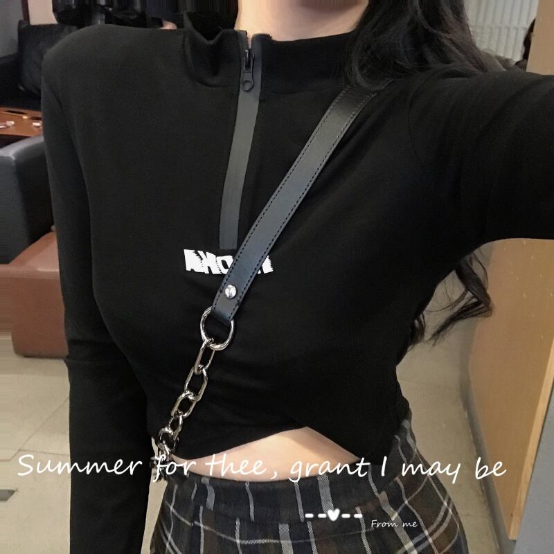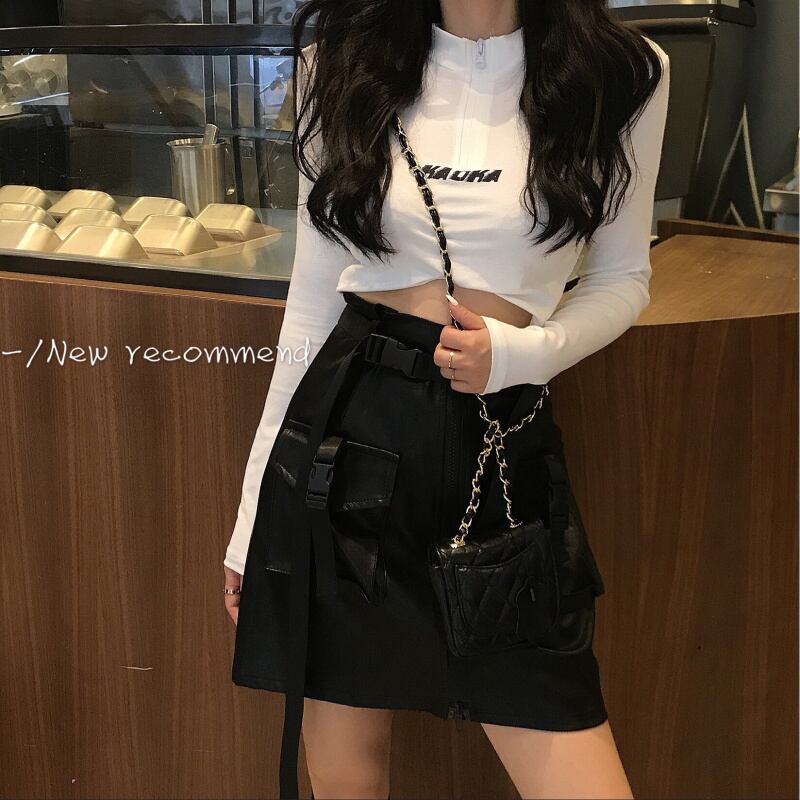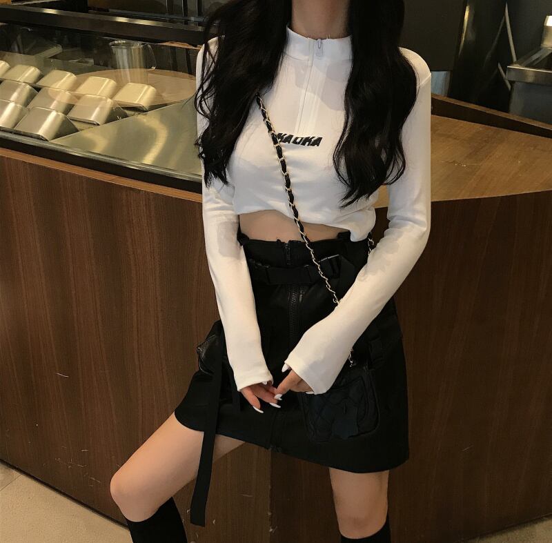 香港スタイルのパーソナライズされたジッパーミドルカラーレタープリントショートクロップトップシャツ2020夏のトレンドカジュアルTシャツ YY-ファッション98854499990