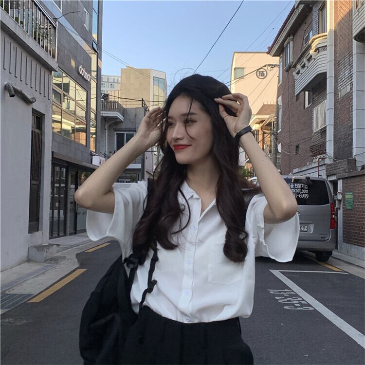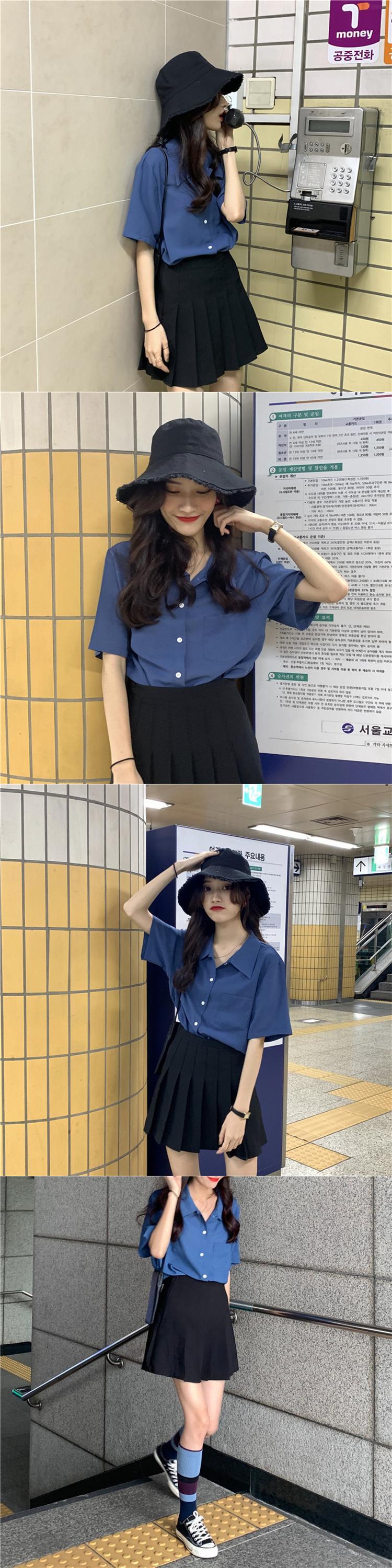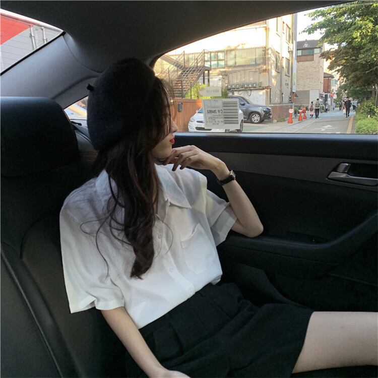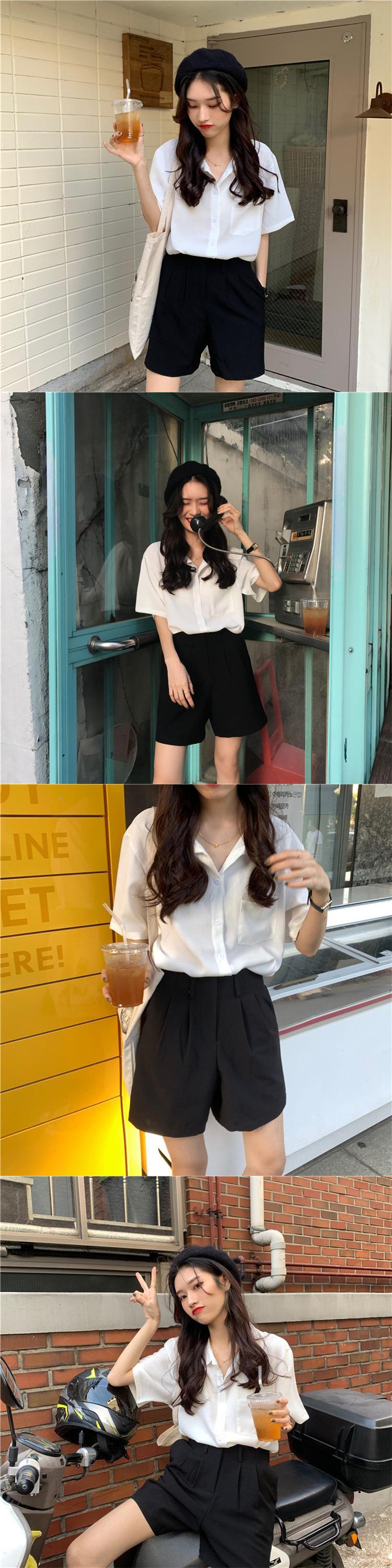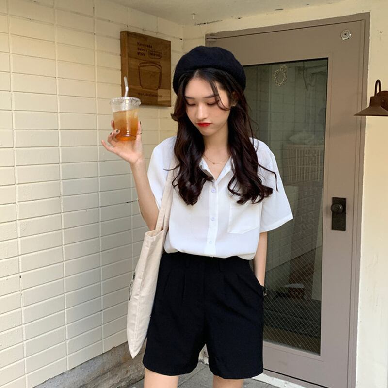 スリミングラペル半袖ポケットシャツ2020年春夏ルーズスリミングシャツシングルブレストボトムトップス女性 YY-ファッション11291199699