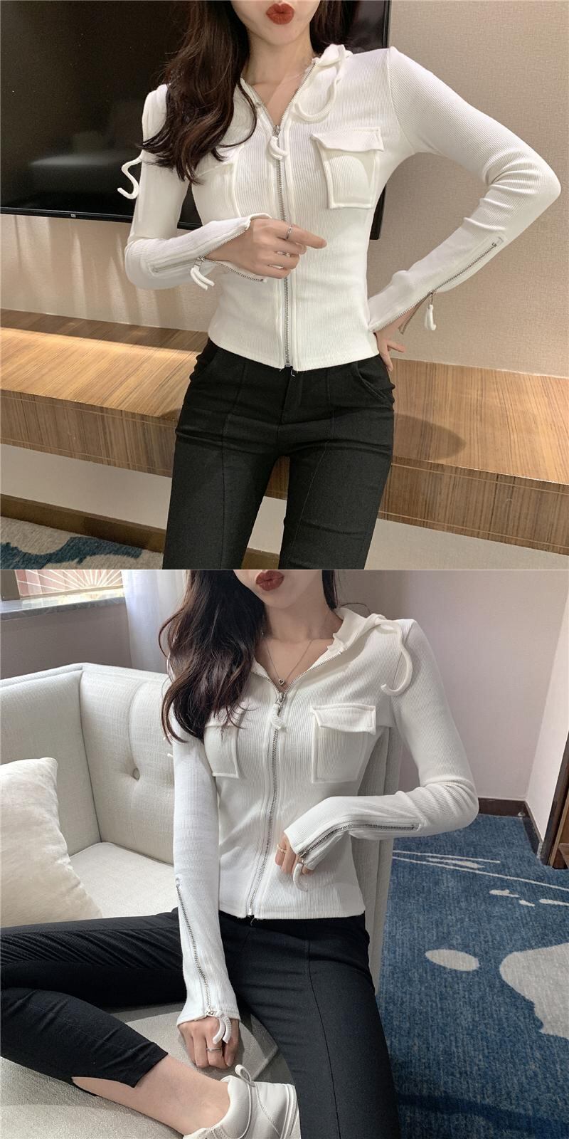 2020フード付き長袖スモールジャケットショートセータージッパースリムオールマッチトップボトムシャツレディース YY-ファッション27222057789