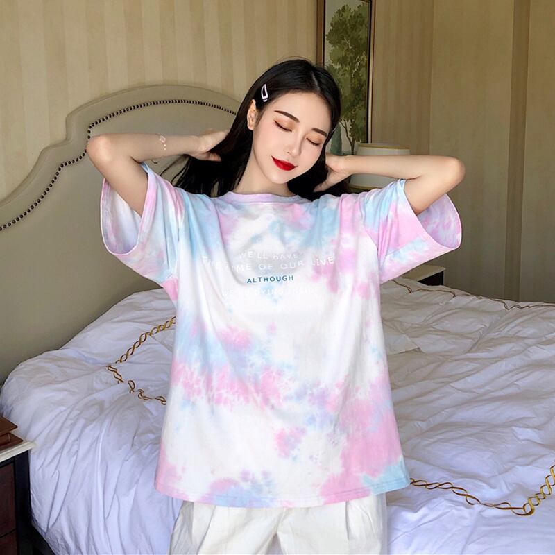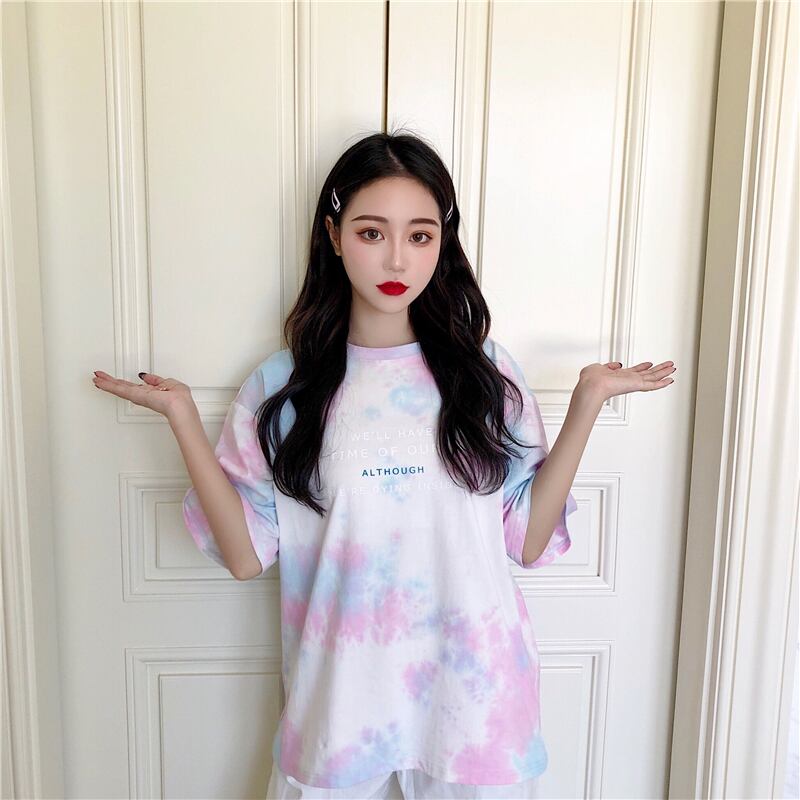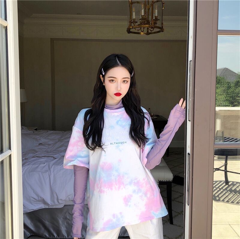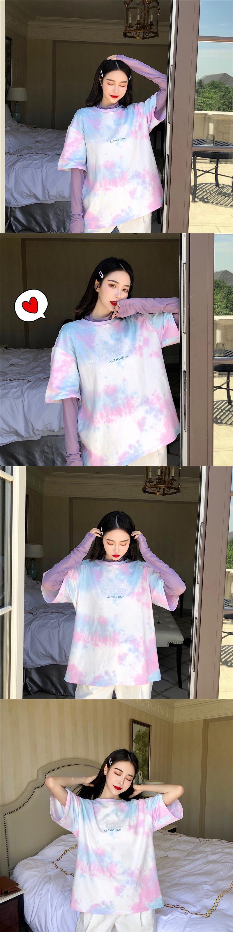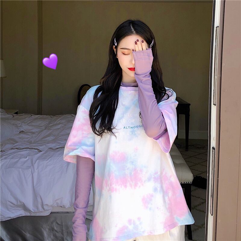絞り染め半袖ルーズTシャツトップス+パープルメッシュインナー長袖ボトミングシャツレディース2020年夏新作スタイル YY-ファッション71558479960