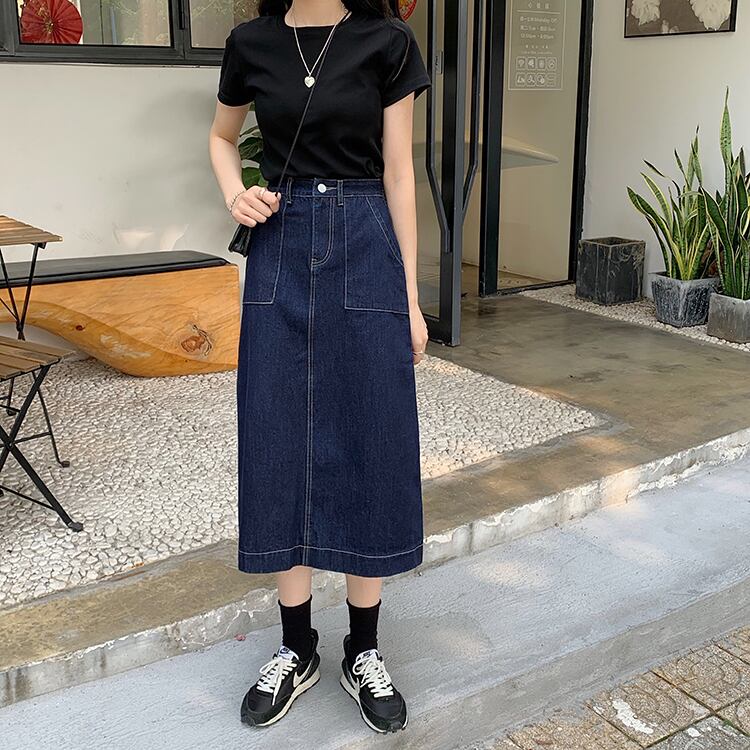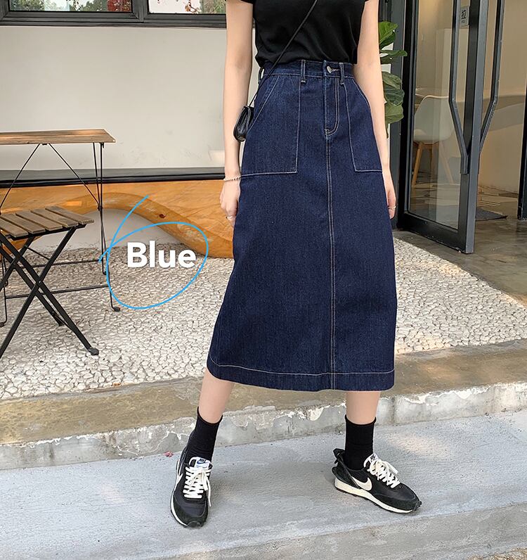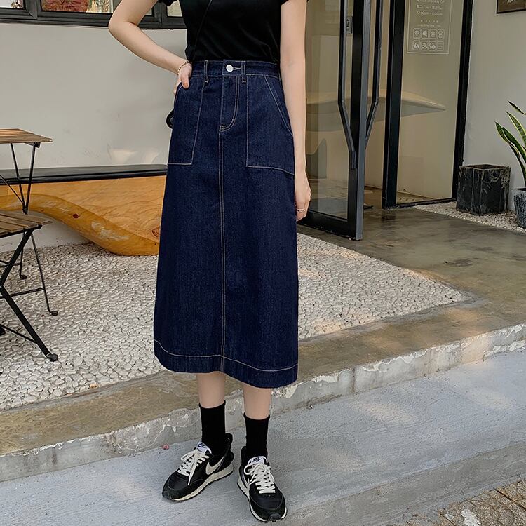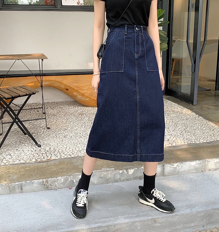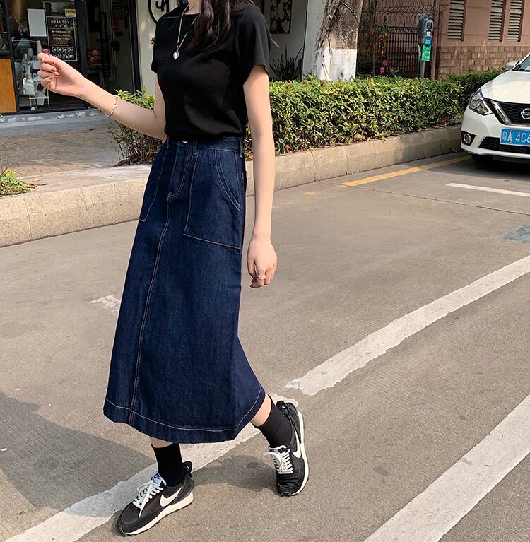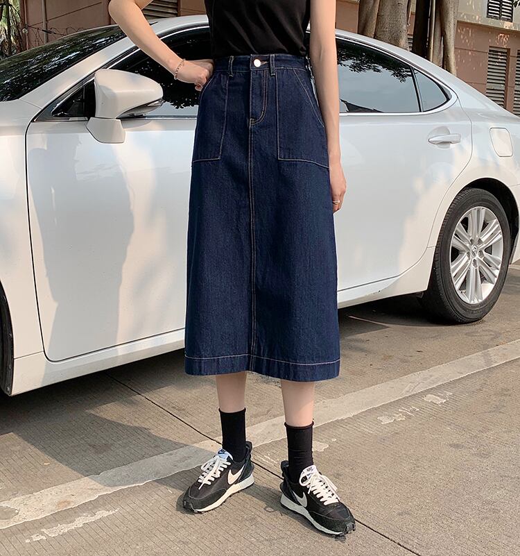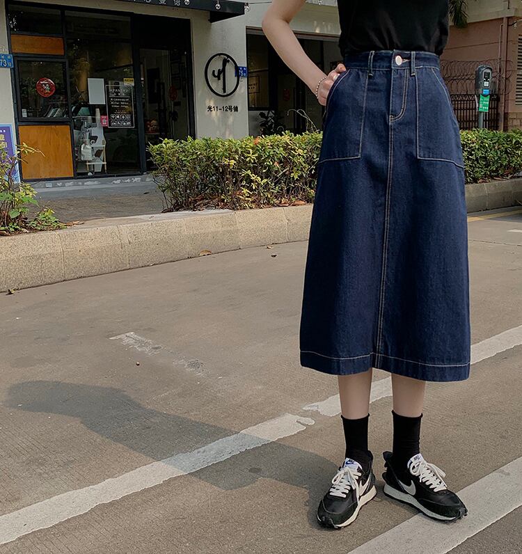 2020年初春新作レディースバージョンベーシック無地Aラインスカートフレンチウエスタンスタイルオールマッチデニムミディスカート YY-ファッション57044984579
