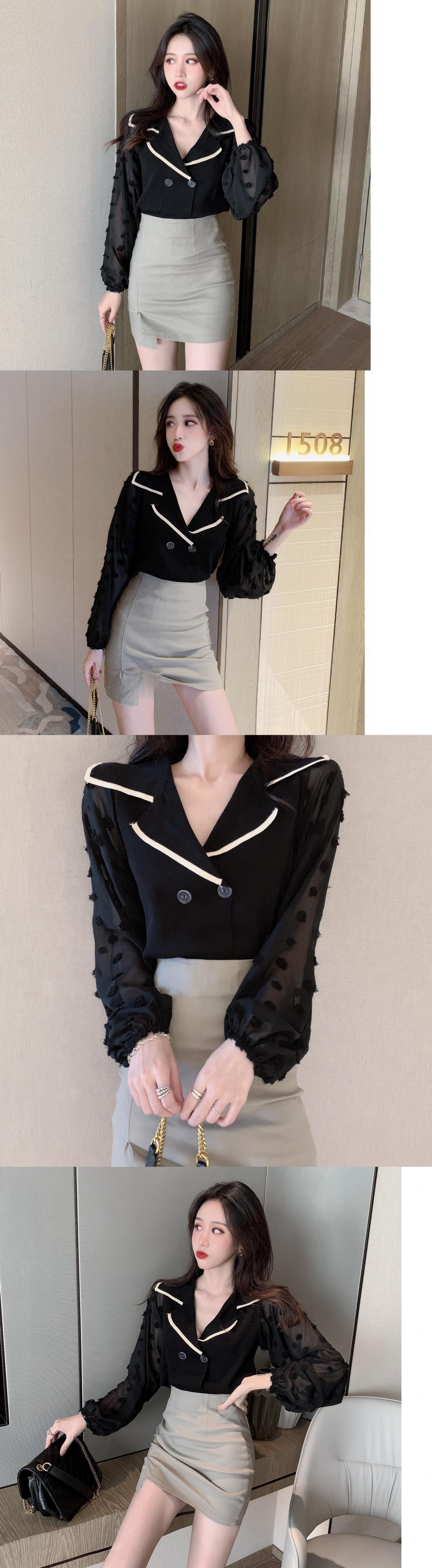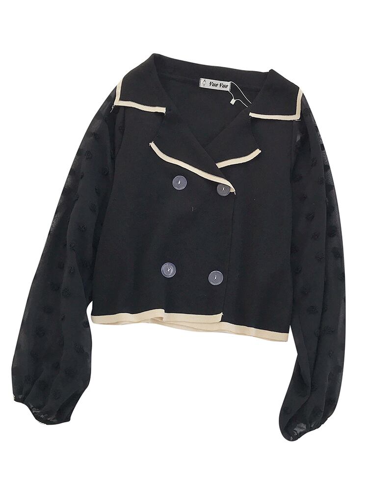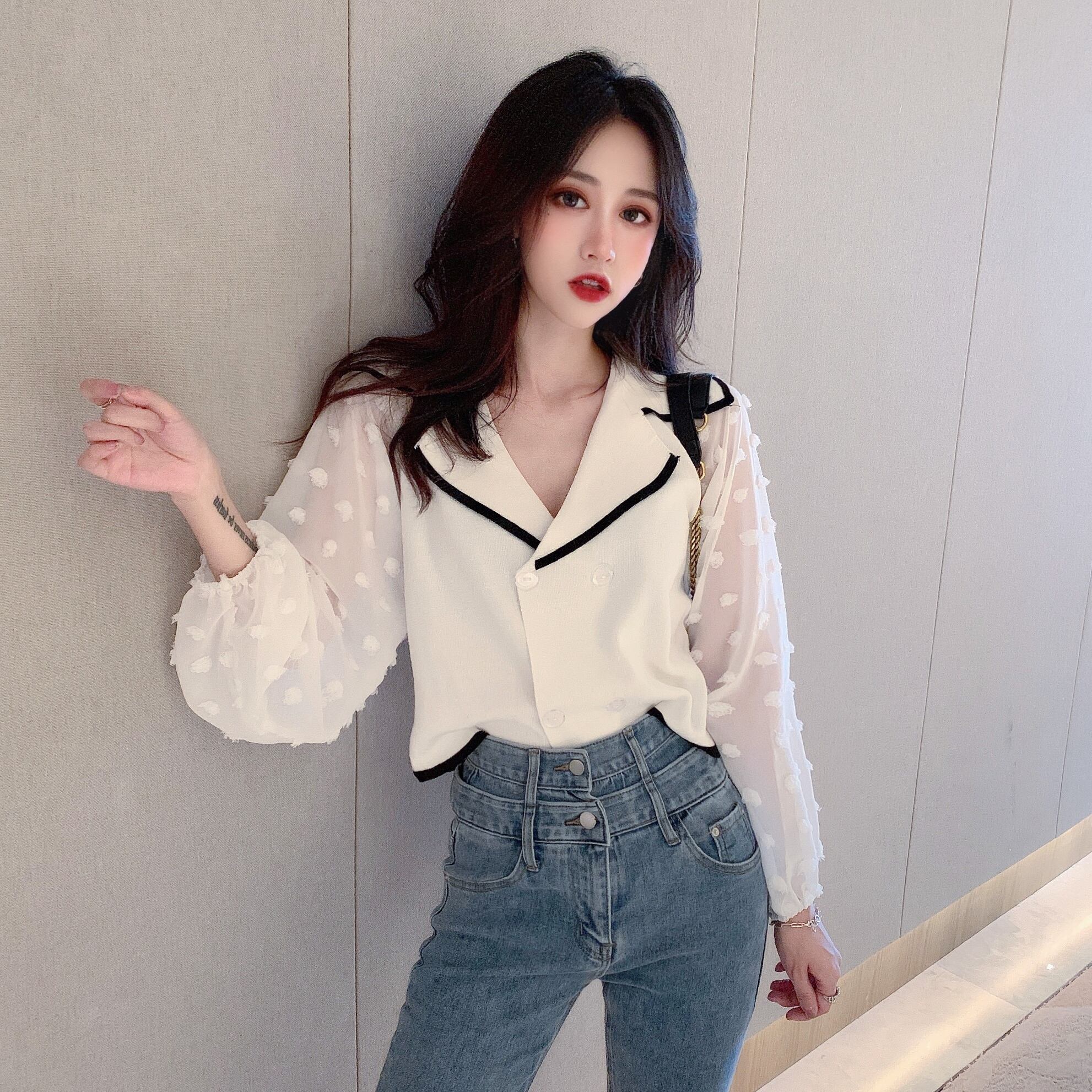 新しいシックなファッションのウエスタンスタイルのビッグVラペルダブルブレストショートトップのニットシャツ女性2020夏バージョン YY-ファッション12645743888