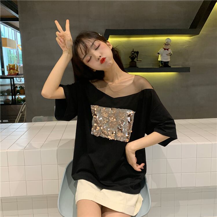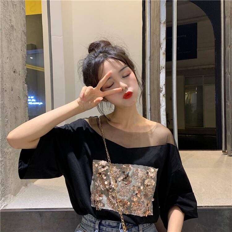 メッシュ刺繍ラウンドネックプルオーバー半袖Tシャツレディース2020年夏新作インワイルドルーズトップトレンド YY-ファッション14102350856