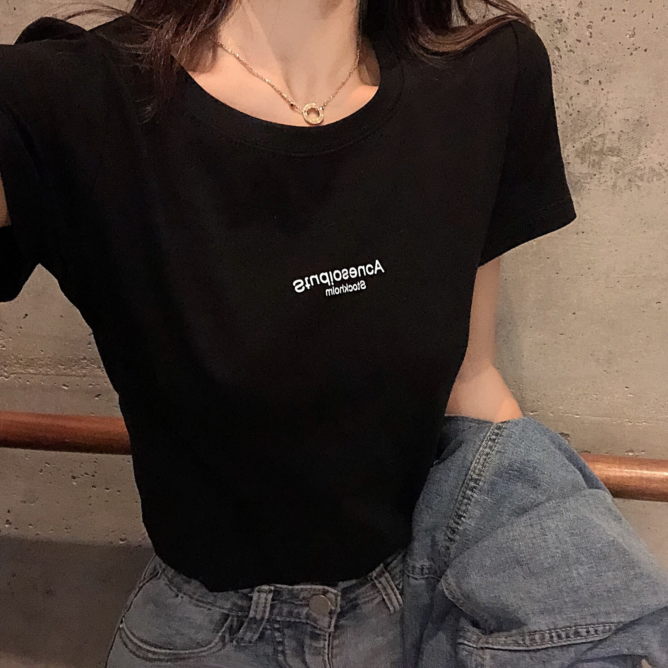 2020年春夏ウィメンズシンプルスリムショートカジュアルカジュアルワイルドルーズシンスモールレタープリント半袖Tシャツ YY-ファッション95758782808