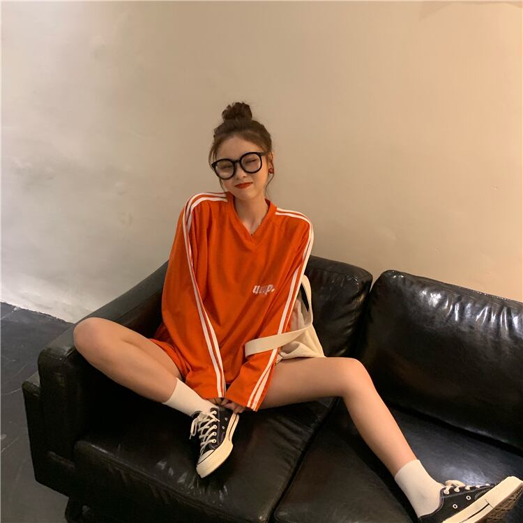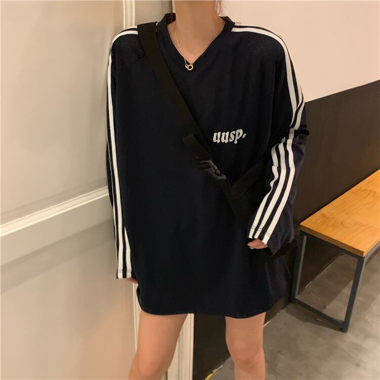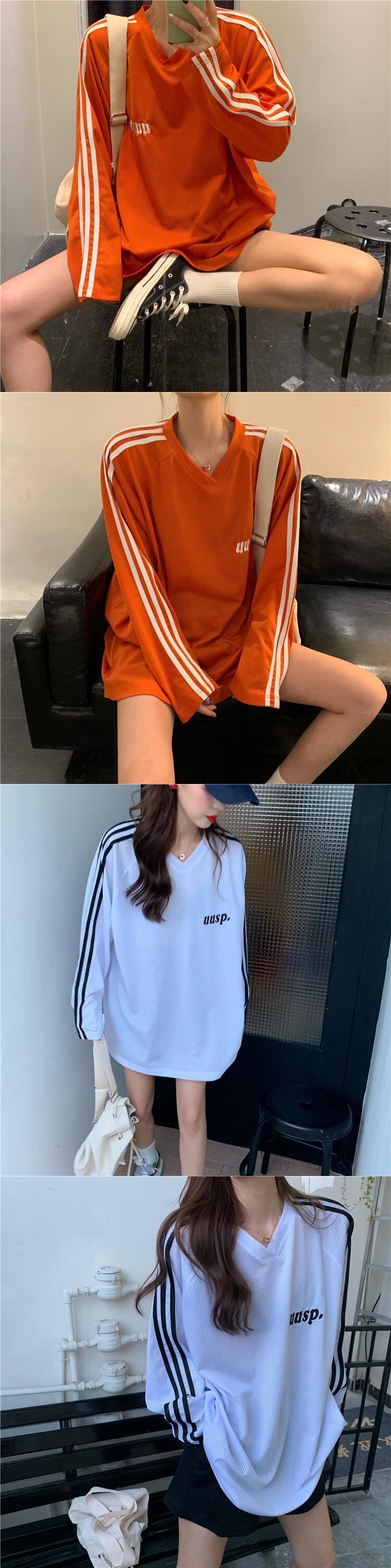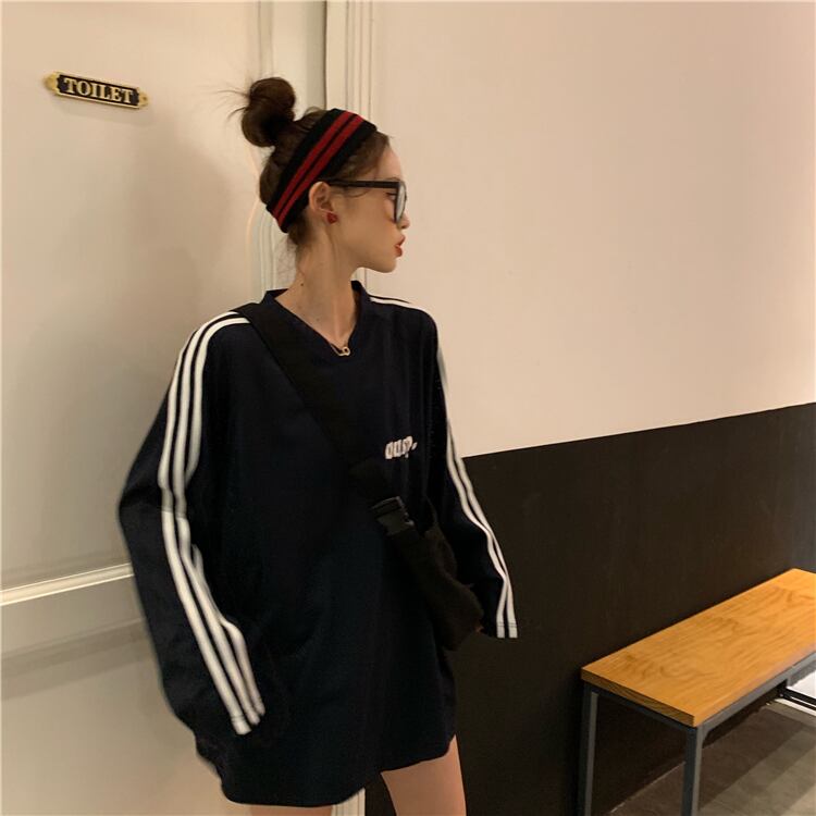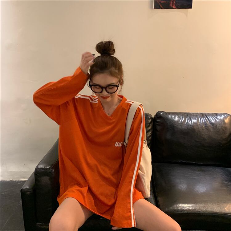 原宿の夏バージョン怠惰なルーズルーズシンインシンサンスクリーンVネックプルオーバー長袖Tシャツ女子学生トップ YY-ファッション6085514517