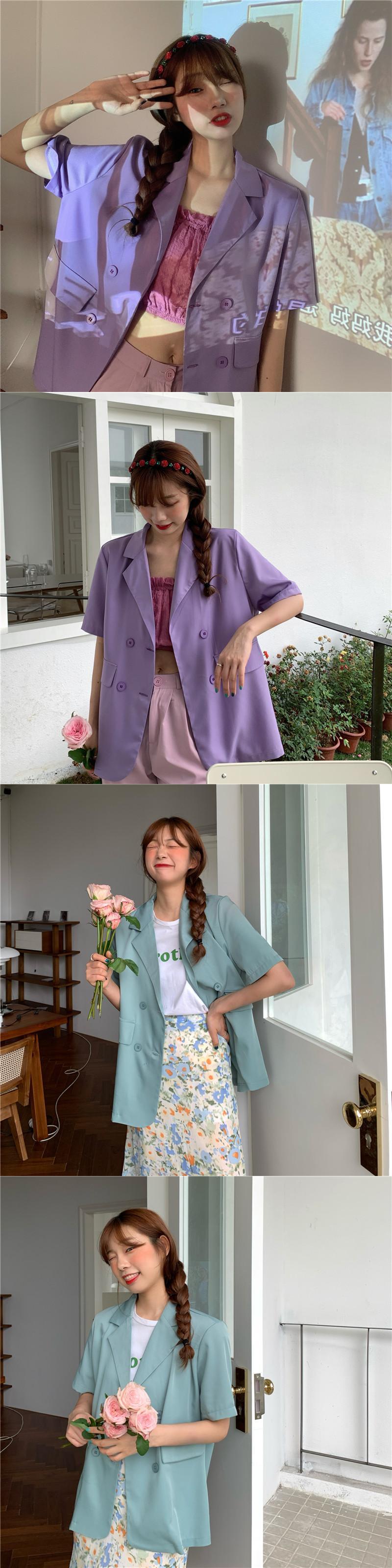 シックな新しいキャンディーカラーの野生のマルチカラーの薄いルーズで薄い半袖のスーツジャケットの女性の2020年秋冬バージョン YY-ファッション15447648918