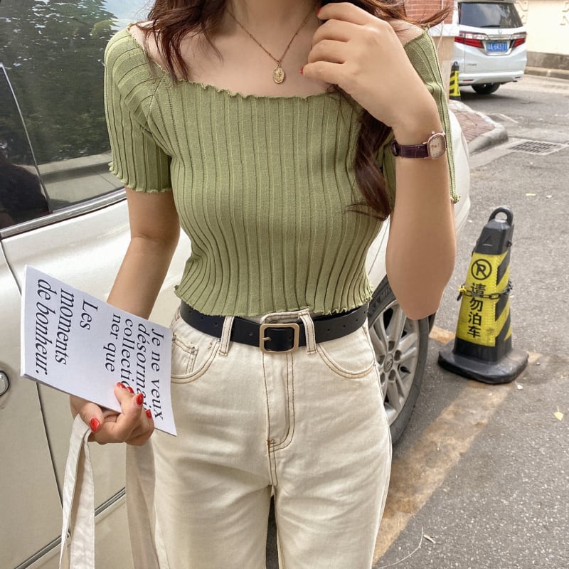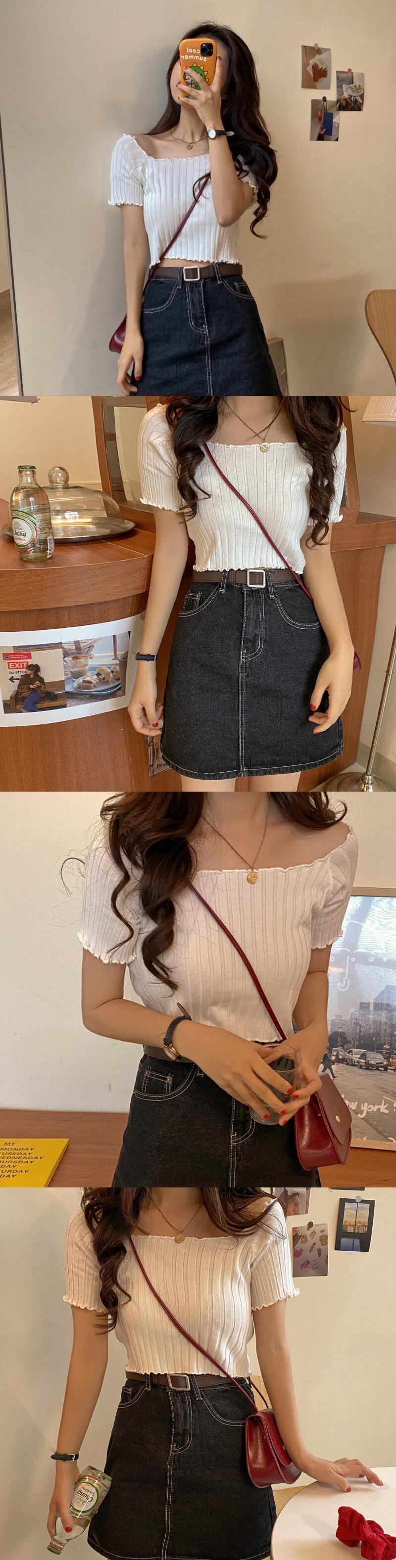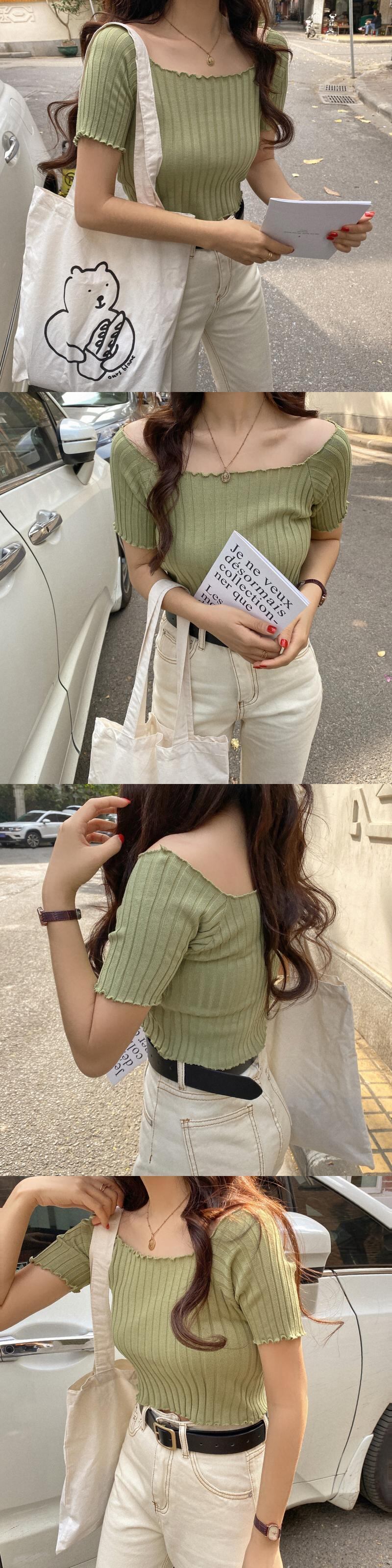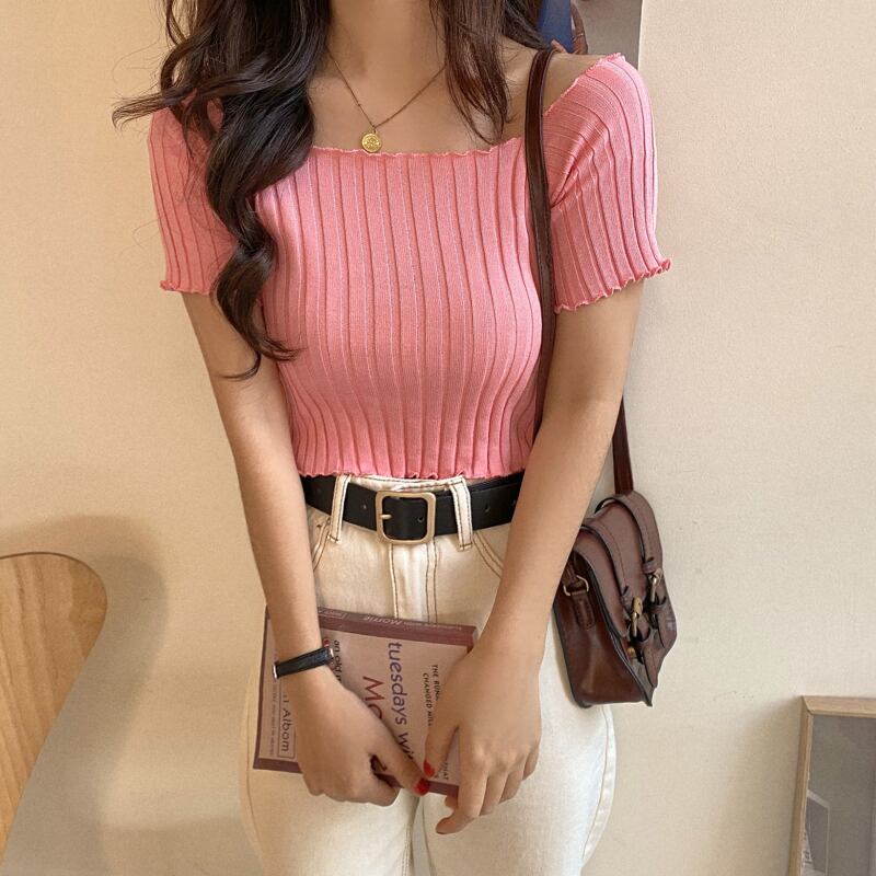 一言スクエアカラーレトロ香港スタイルシックプルショルダートップ女性インタイドネットレッド学生半袖Tシャツ女性秋の服 YY-ファッション44624536365