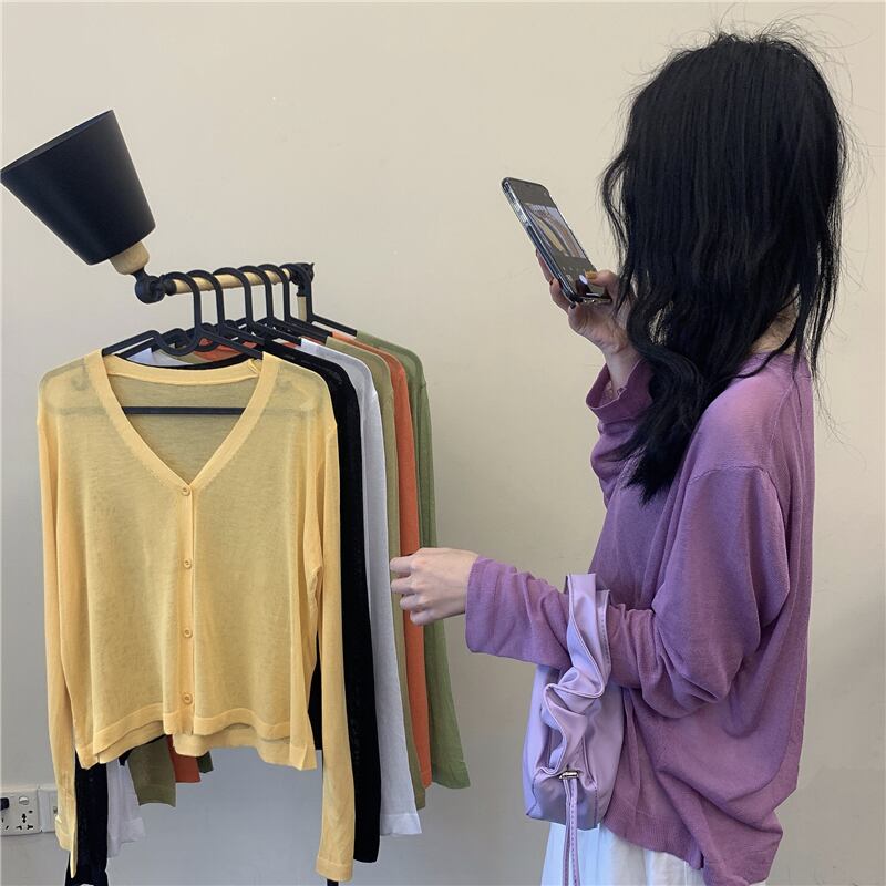 2020年夏の新しいネットレッドVネック薄いアイスシルクbmニットカーディガンジャケットパープル長袖日焼け止めトップ女性 YY-ファッション98673949679