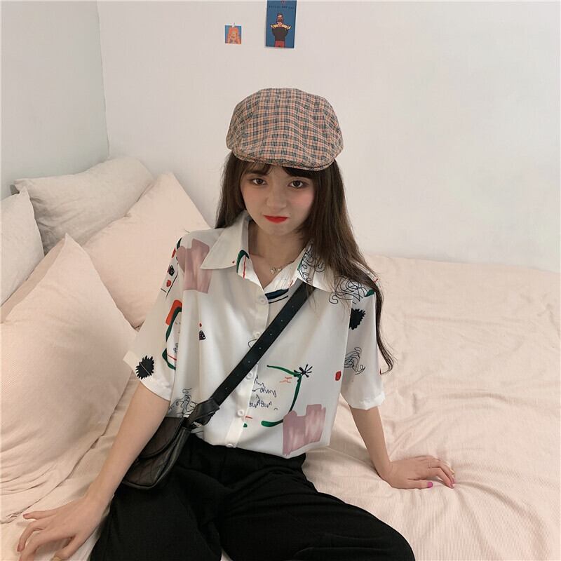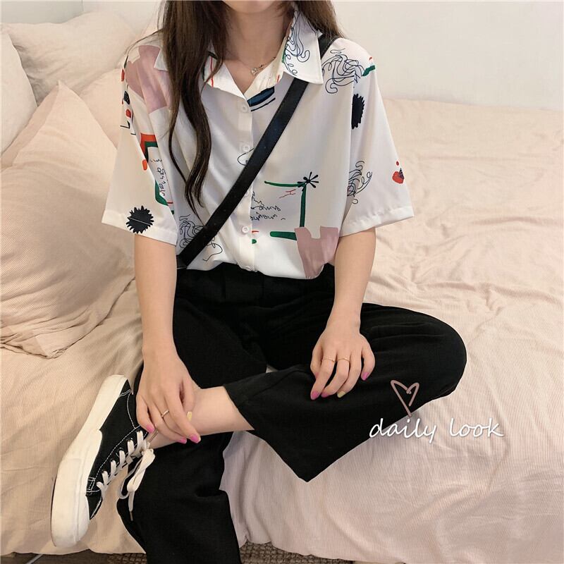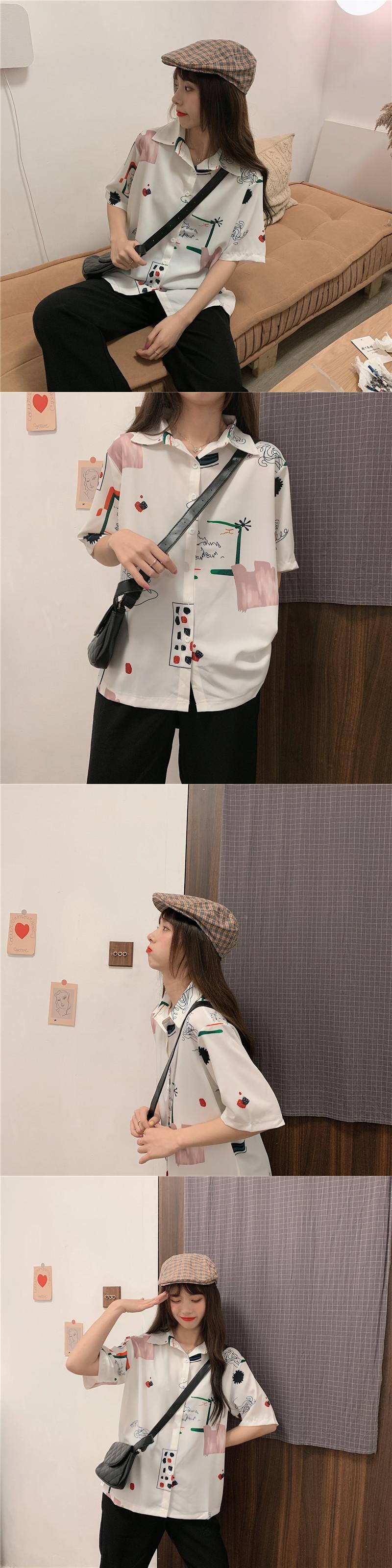 香港スタイルのフラワーシャツの女性の2020年の新しい女性バージョン半袖レトロ秋冬シャツニッチ半袖プリントトップ YY-ファッション14889106800