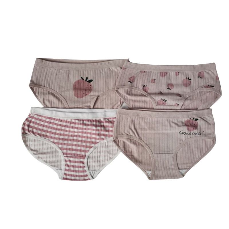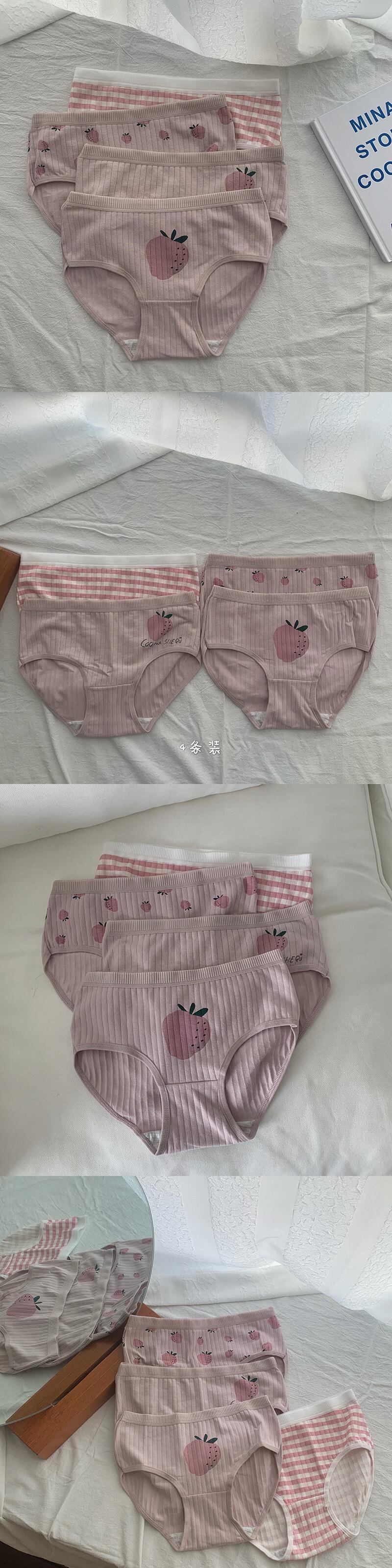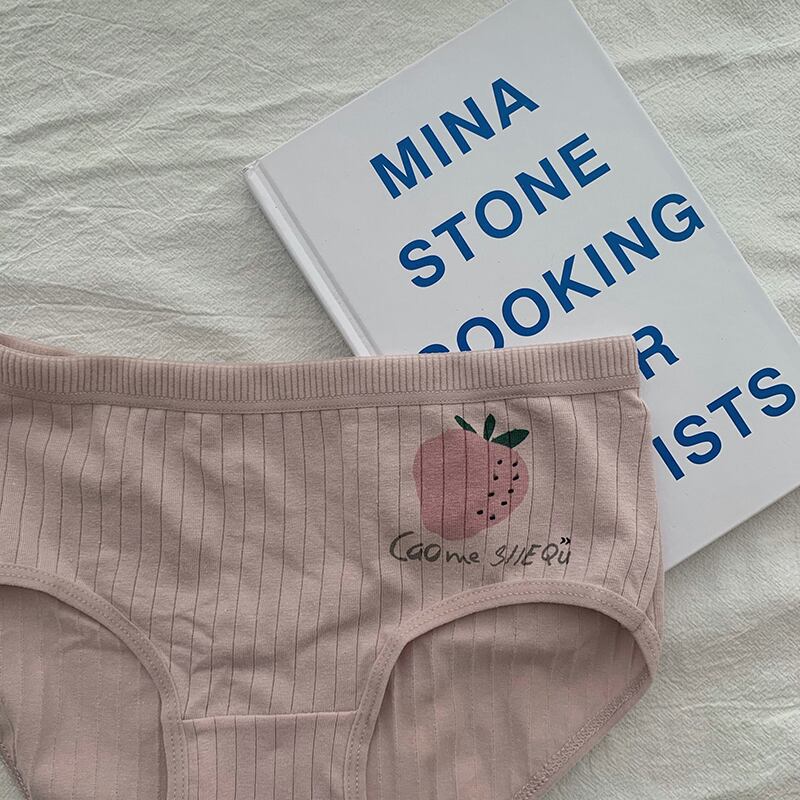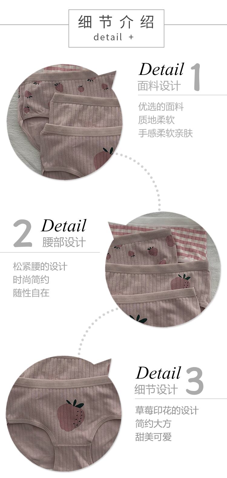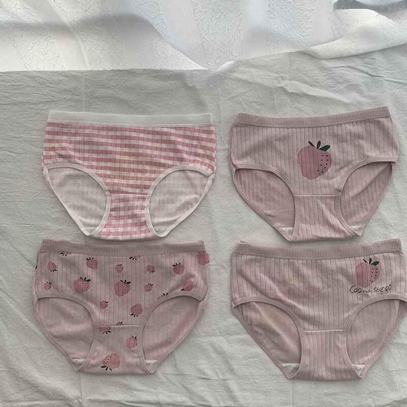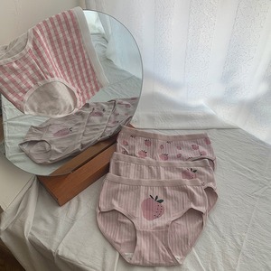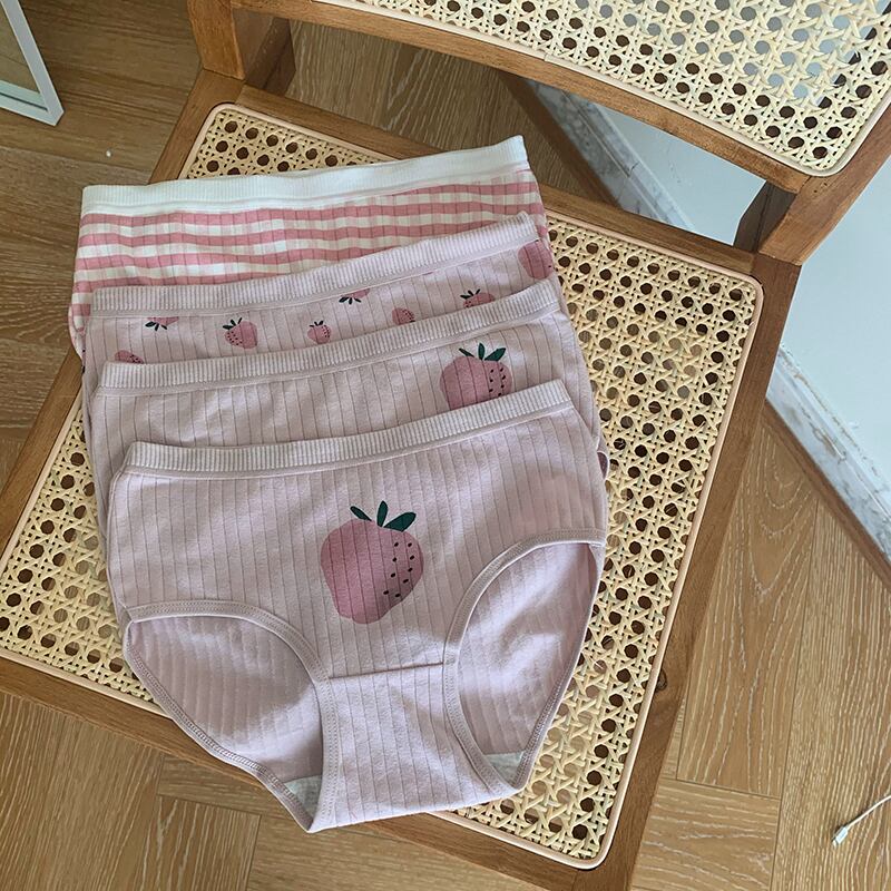 秋冬新バージョンのeseyかわいいストロベリーミッドウエストヒップストライププリントパンティー4枚 YY-ファッション33145106708