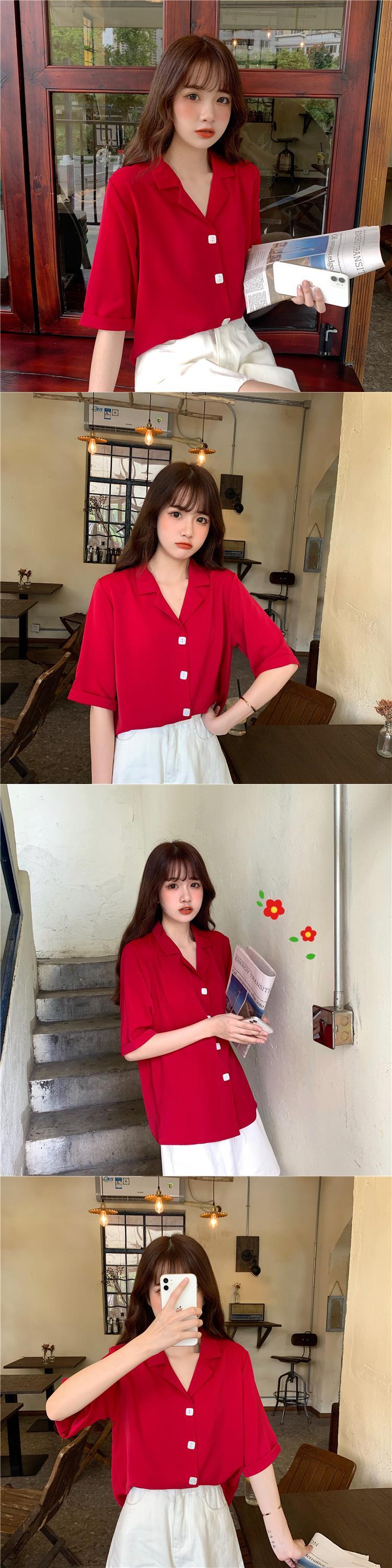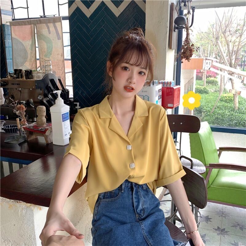 2020年秋新しいレトロな香港スタイルのスーツの襟半袖シャツ女性のデザインセンスニッチ気質トップトレンド YY-ファッション35627279751