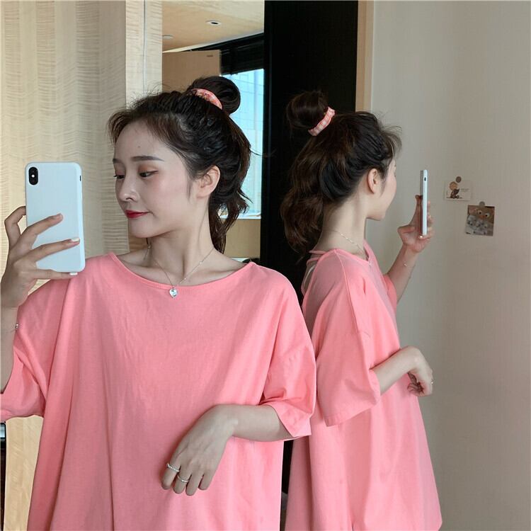 ホルタートップス レディースオータムウィンター薄手ルーズスタイルロングTシャツ ピンク 秋物 冬物 YY-ファッション17229962883