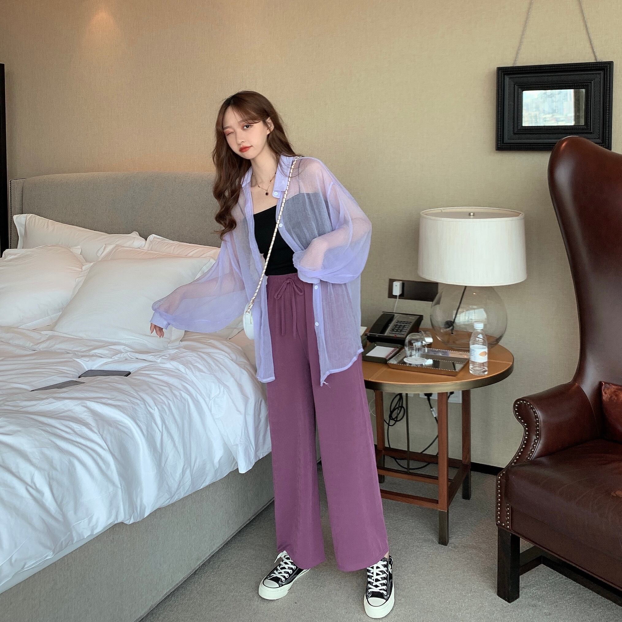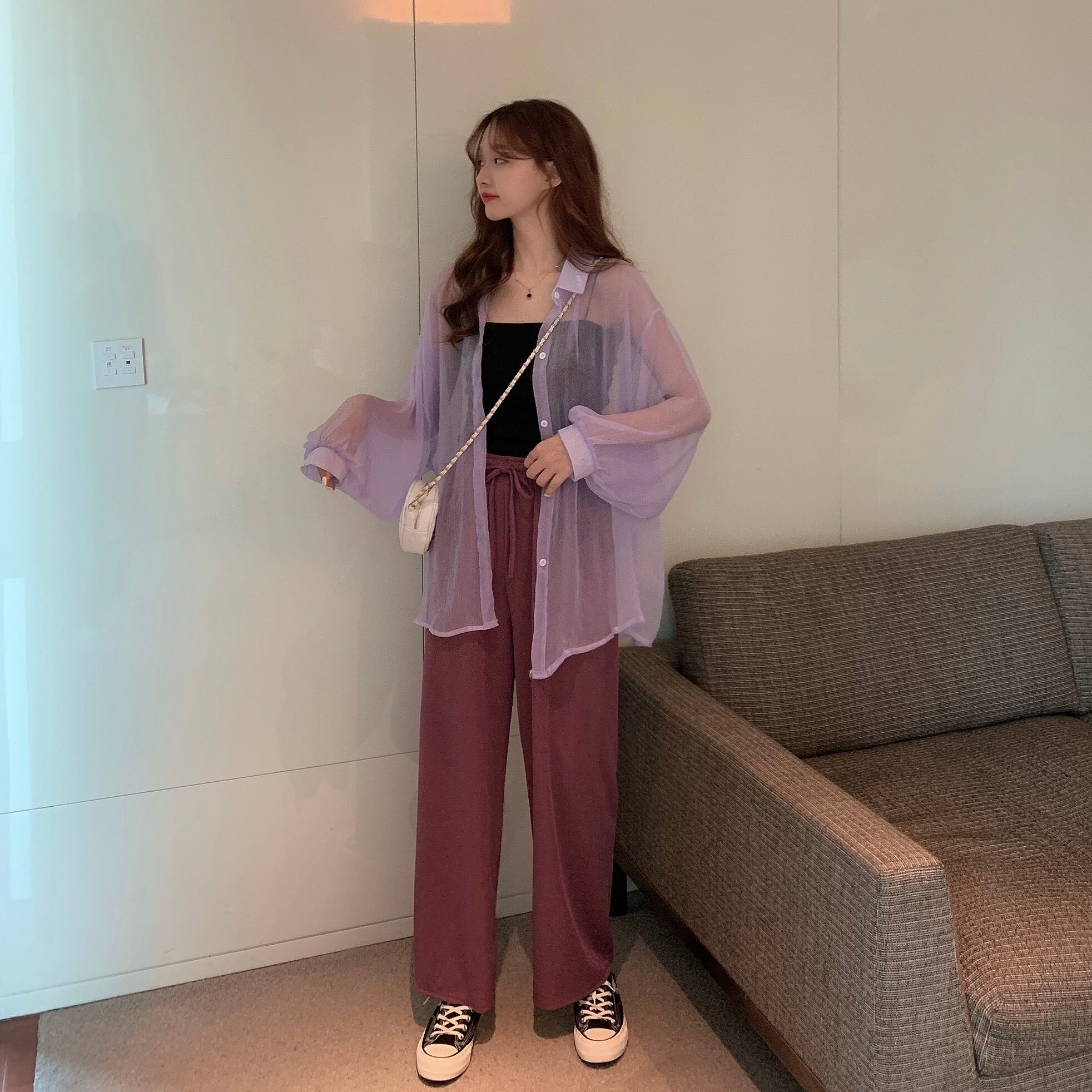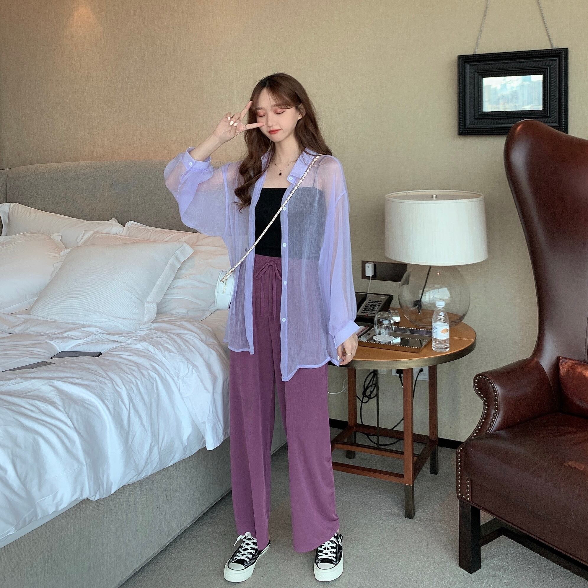 サマーカジュアルシャツ ワイドレッグパンツ レディース 夏物 ワイドパンツ YY-ファッション1759619567