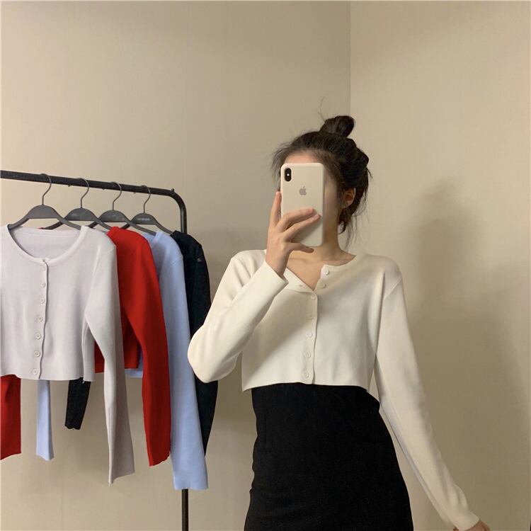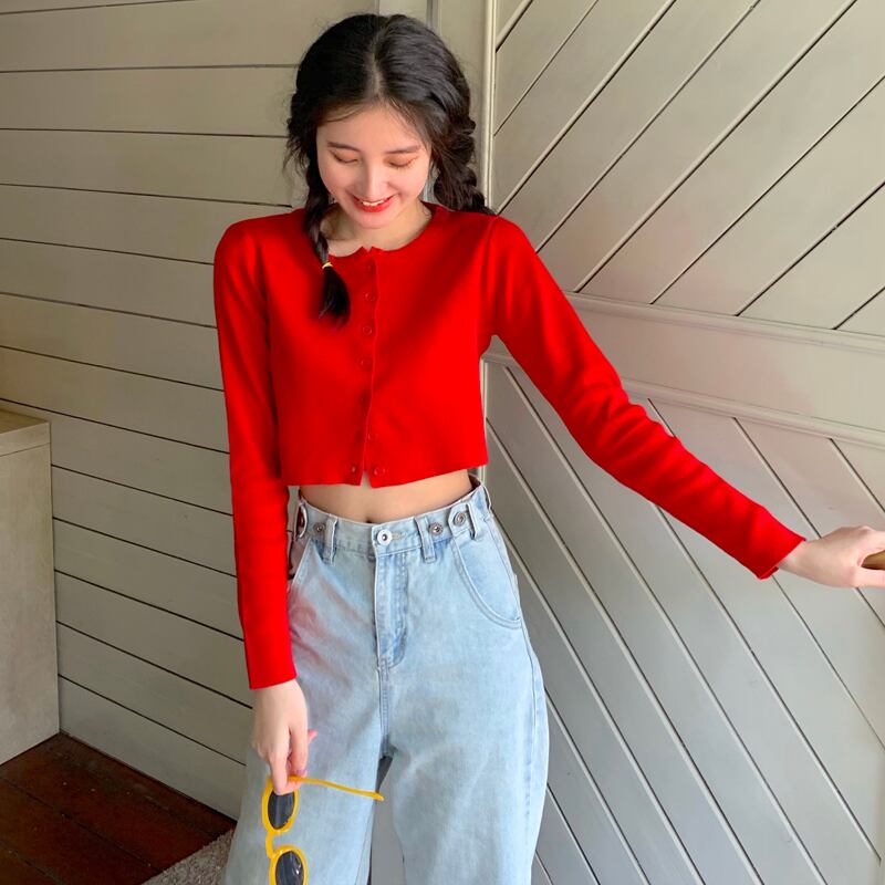 セーター オータムウィンタースタイル薄手レッドショートカーディガントップス ロング 秋物 冬物 シルク YY-ファッション70783666364