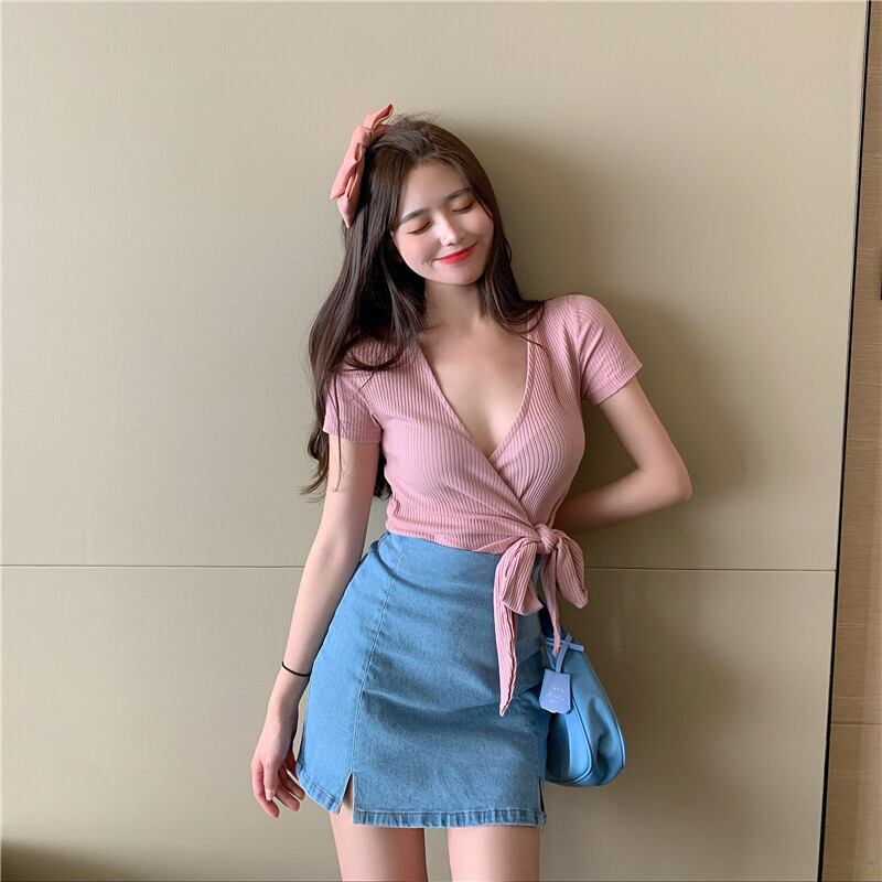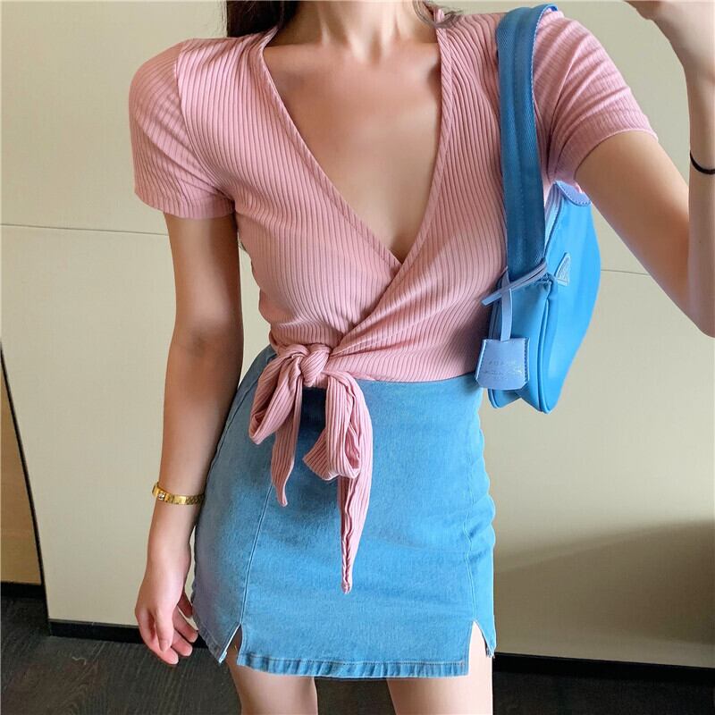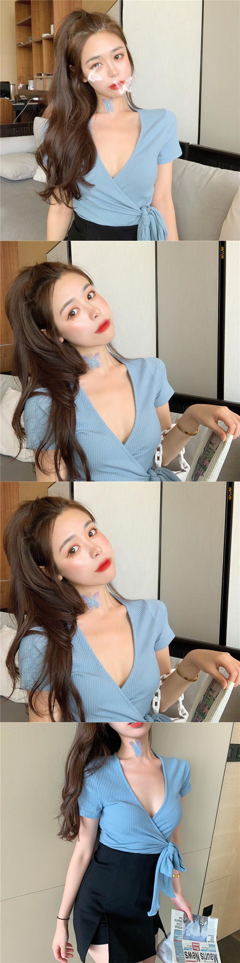 オータムウィンターサイドストラップ ショートハイウェストウェストスリムTシャツ レディース 秋物 冬物 YY-ファッション90068469339