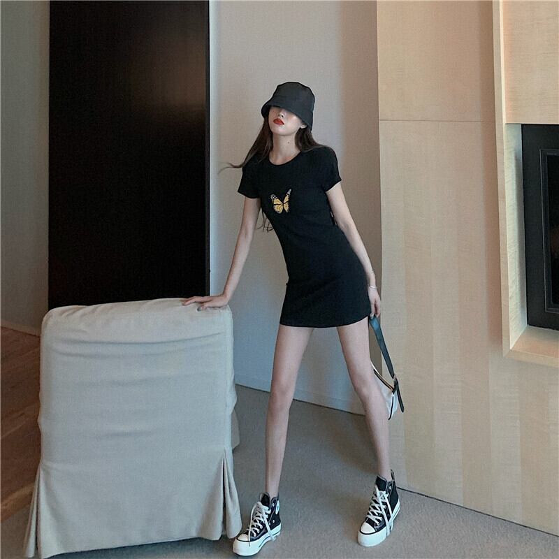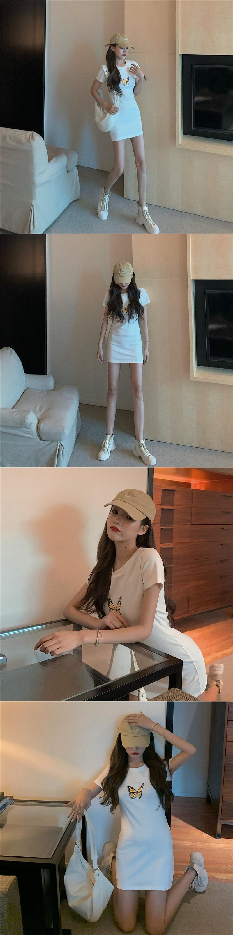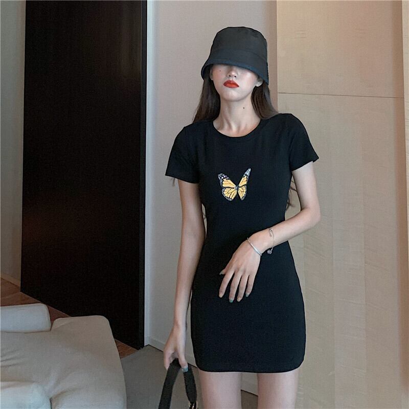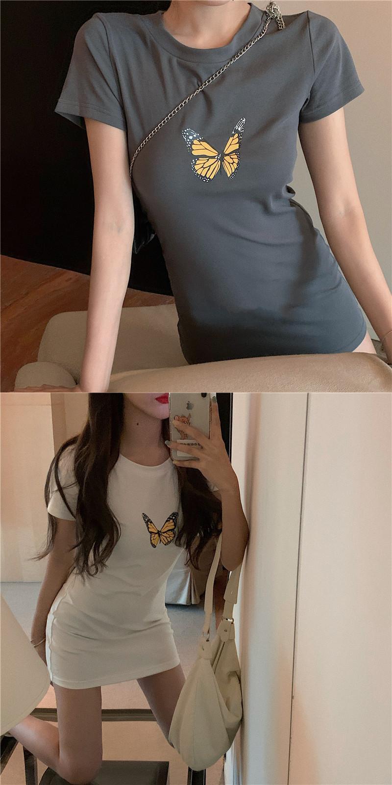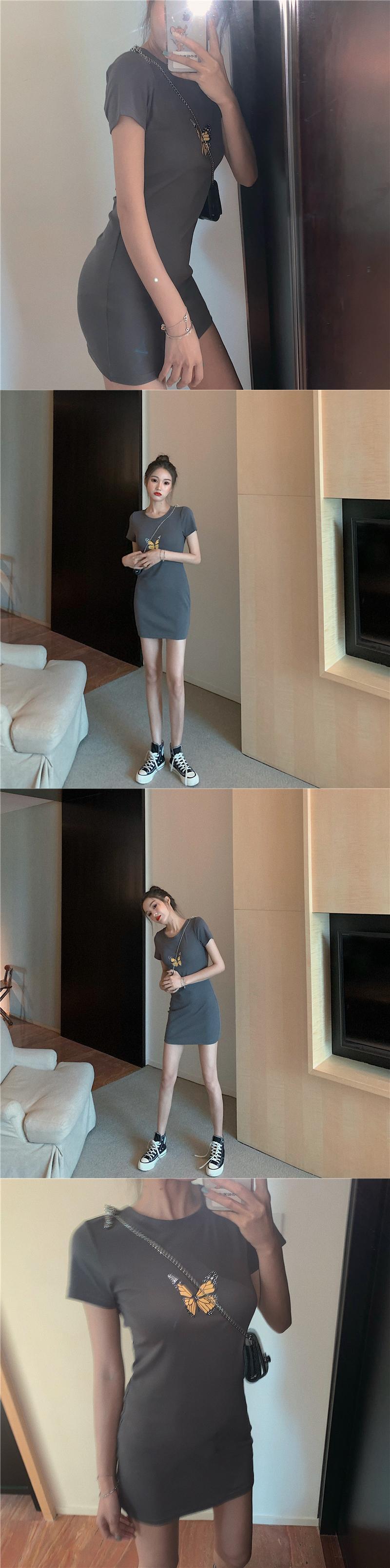 オータムウィンタースカート スタイルButterflyデザイン プリント柄スリム半袖スリーブドレス ショート ハーフスリーブ 秋物 冬物 YY-ファッション6794113414