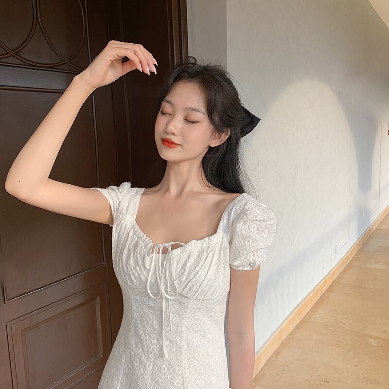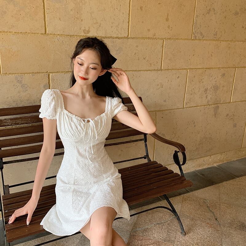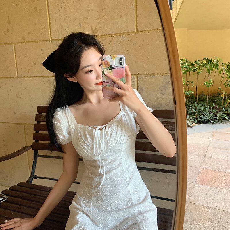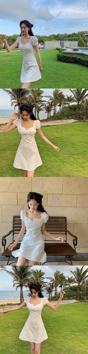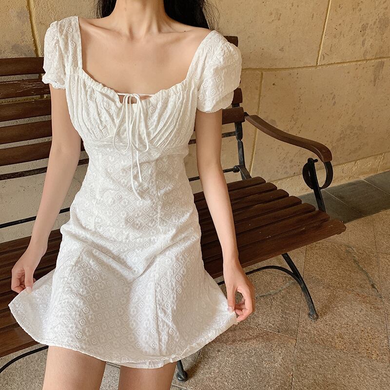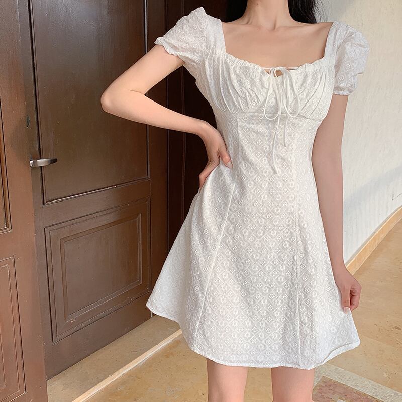 カラー刺繍ホワイトドレス ウェストAラインスカート オータム 秋物 ウィンター 冬物 スクウェア YY-ファッション19896019164