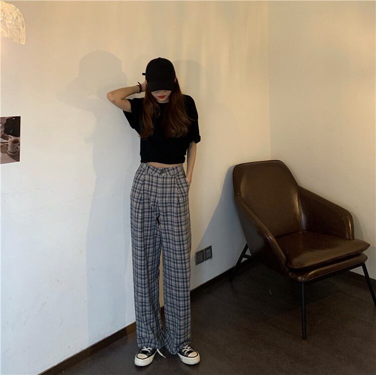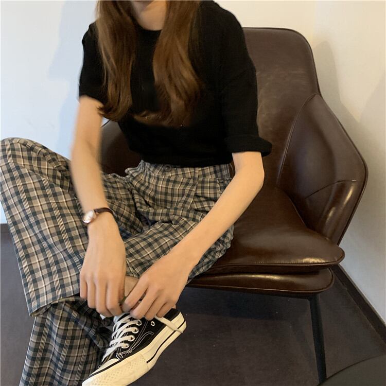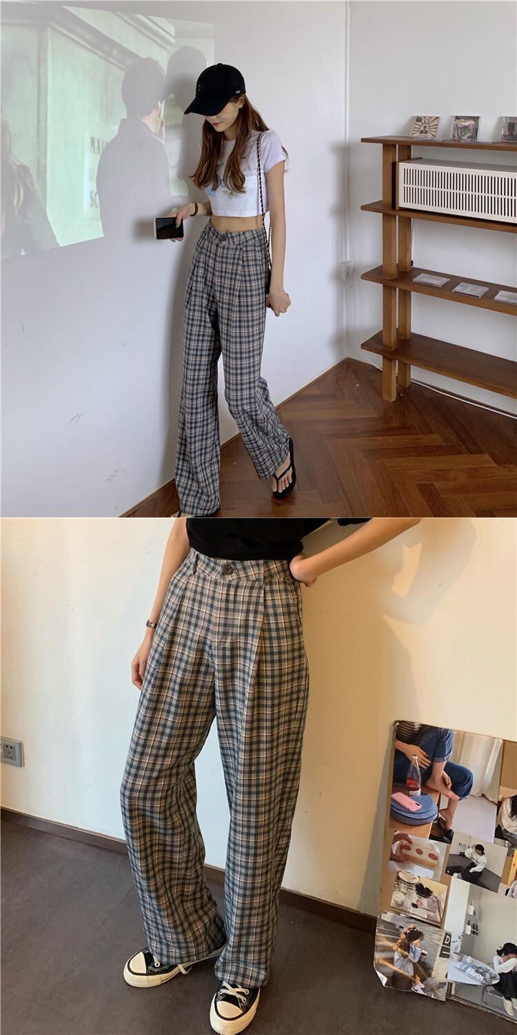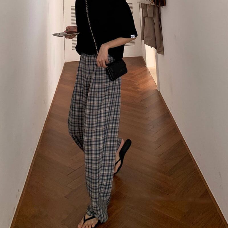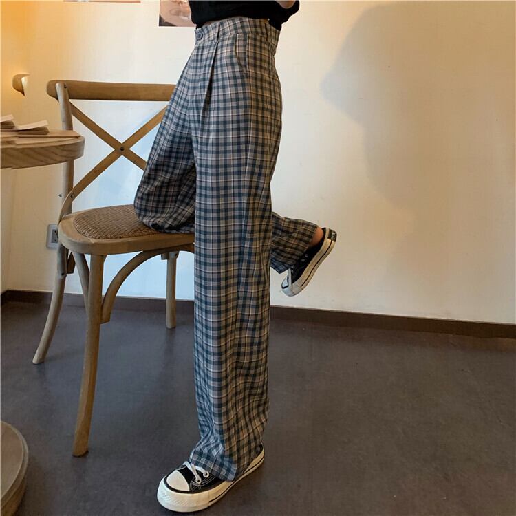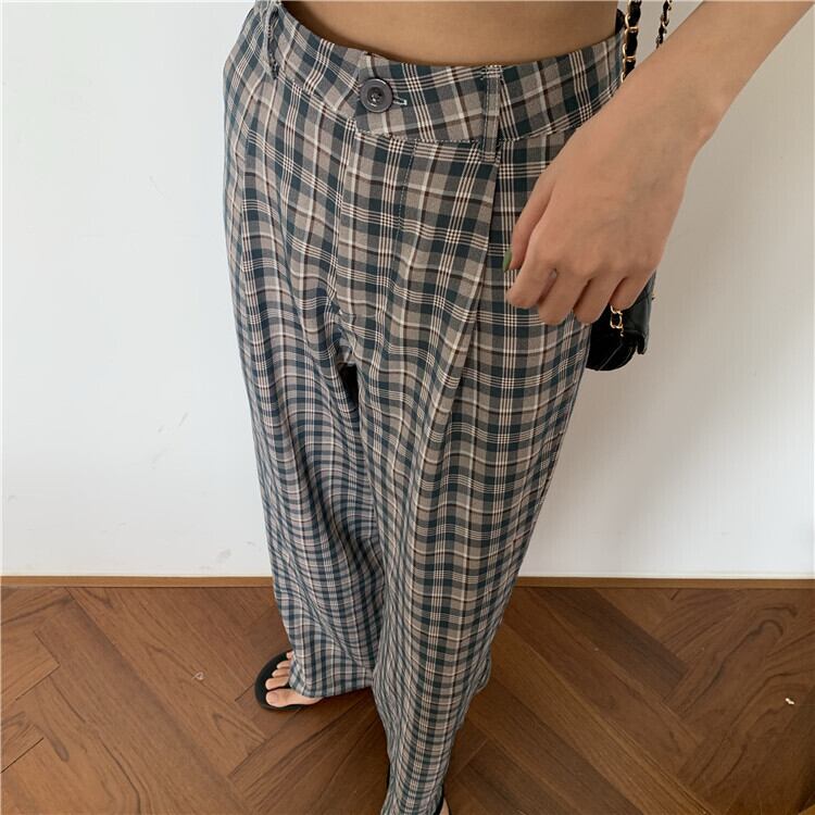 格子柄パンツ オータムウィンタールーズハイウェストカジュアル薄手 秋物 冬物 YY-ファッション82390679211