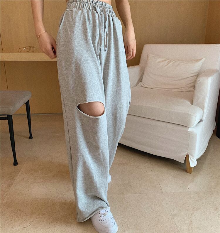 グレーパンツ カジュアルオータムウィンターハイウェストルーズ 秋物 冬物 YY-ファッション77639685029