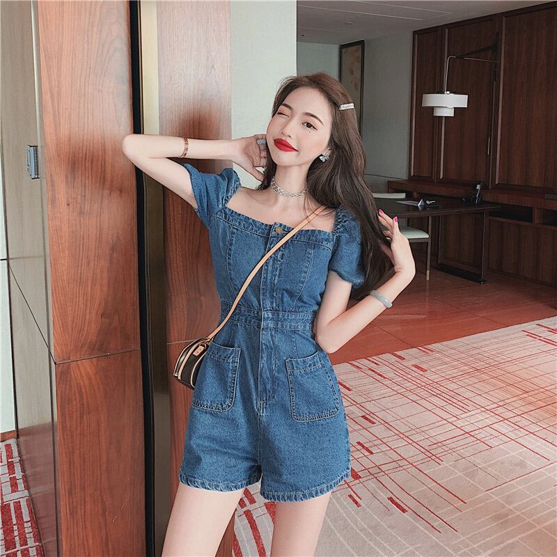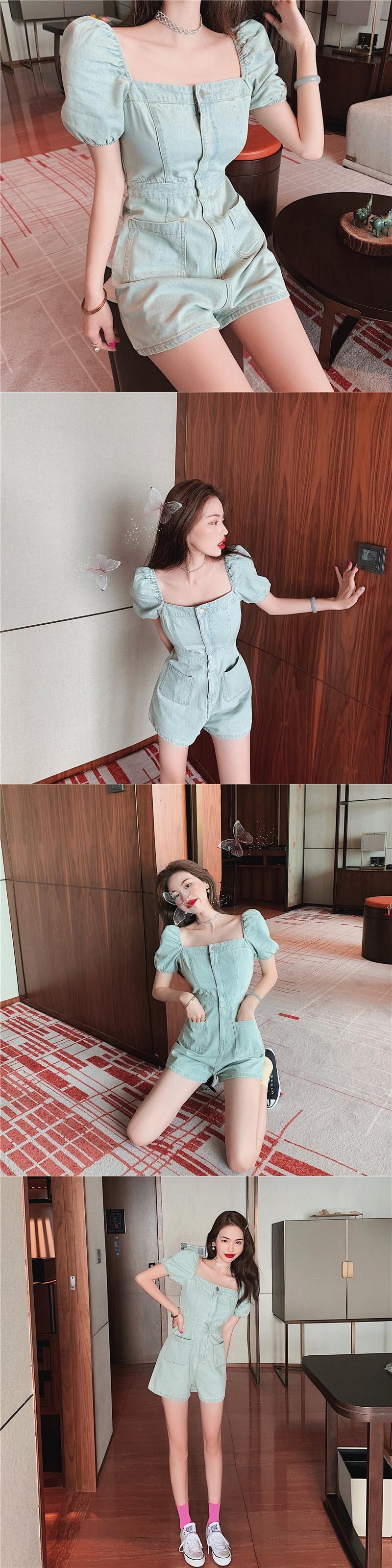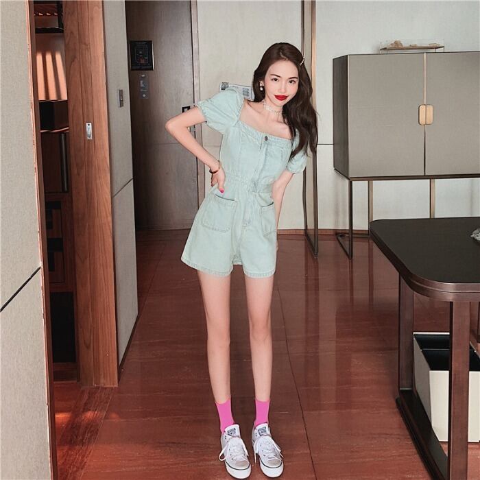 カラージャンプスーツ オールインワン ハイウェストウェストショートワンピースパンツ オータム 秋物 ウィンター 冬物 スクウェア YY-ファッション11760965199