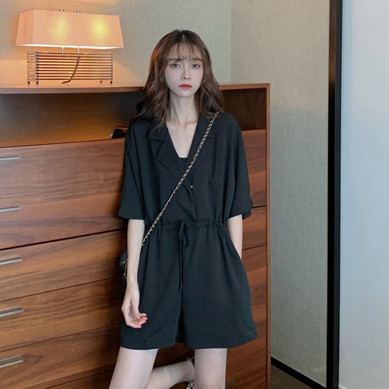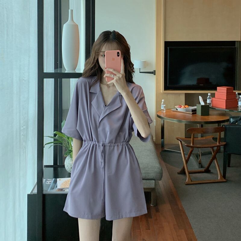 スタイルルーズハイウェストウェストジャンプスーツ オールインワン ワイドレッグショーツ 薄手シフォンレディース オータム 秋物 ウィンター 冬物 ブルマー ワイドパンツ YY-ファッション78223789862