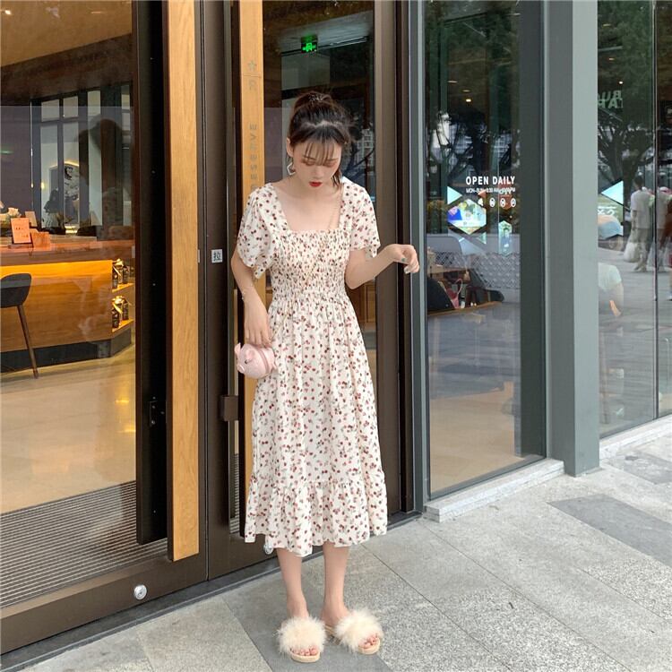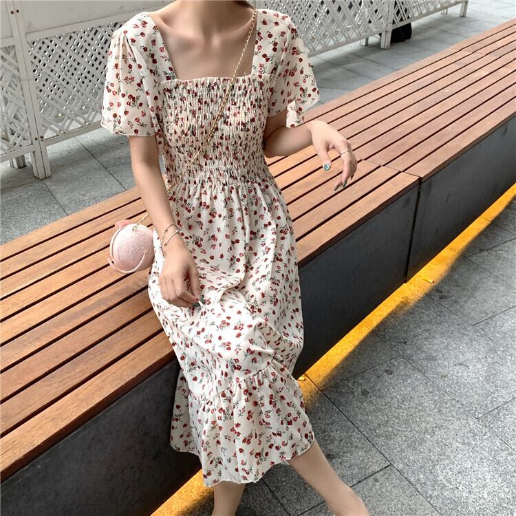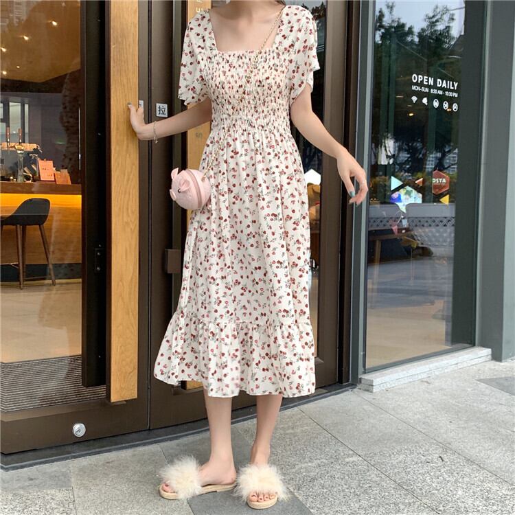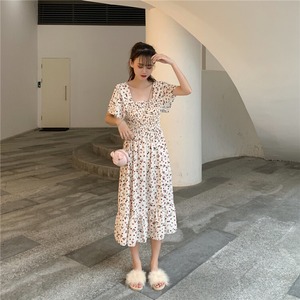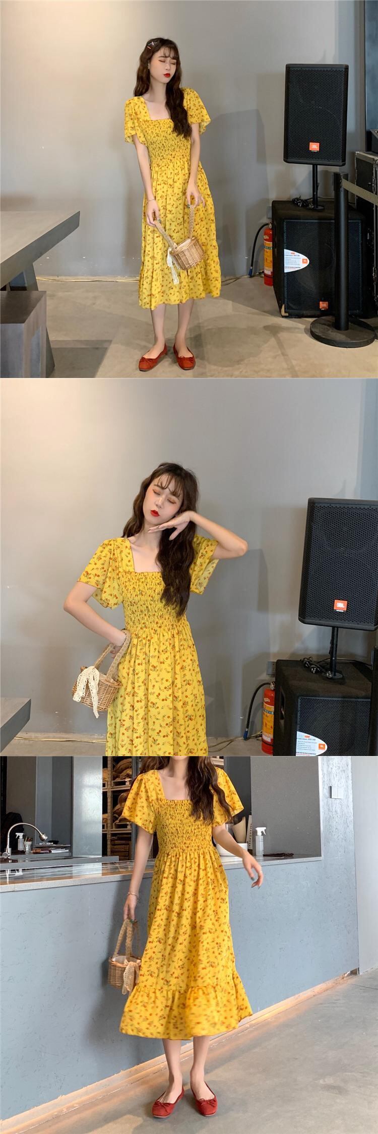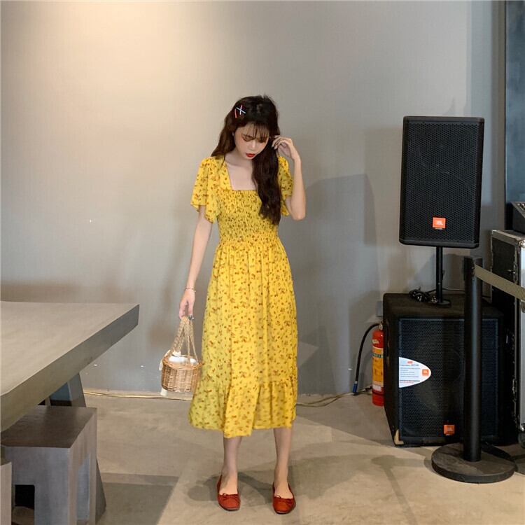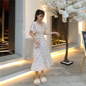 オータムウィンタースタンダードフローラルシフォンドレス ウェストスカート レトロ 秋物 冬物 花柄 YY-ファッション89063677176