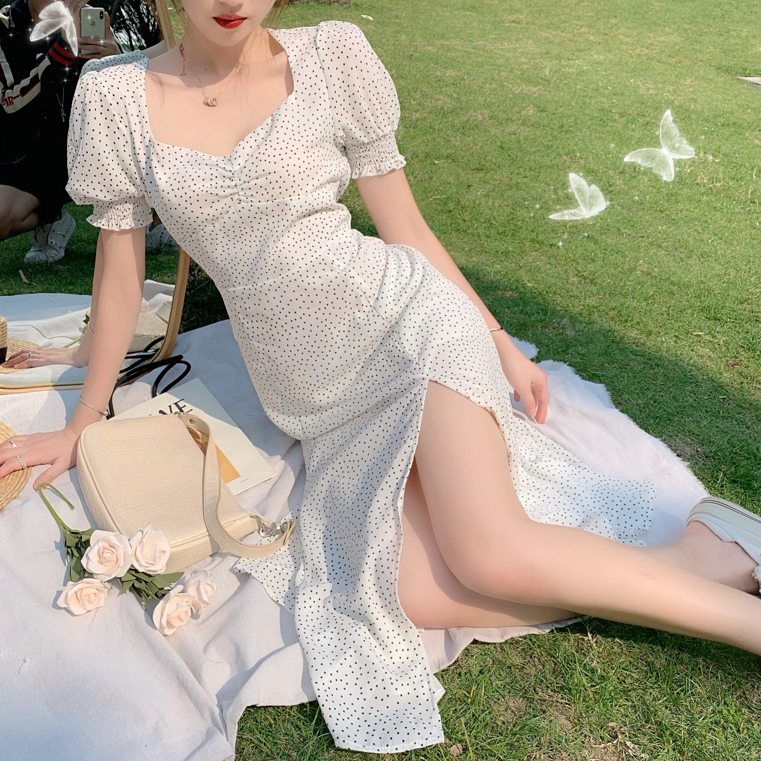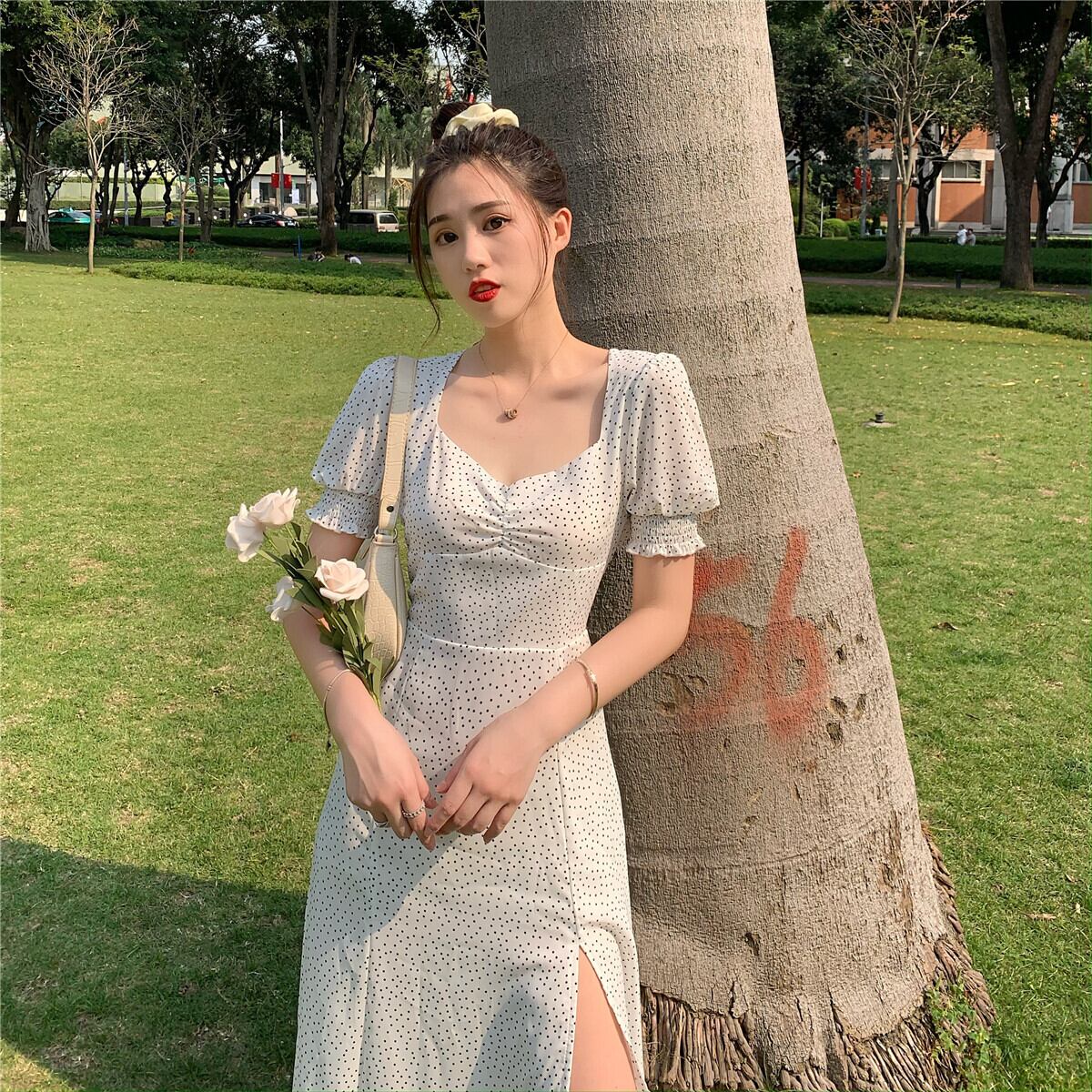 オータムスタンダードスリムシフォン水玉ドレス セーター レトロ 秋物 YY-ファッション37081483570