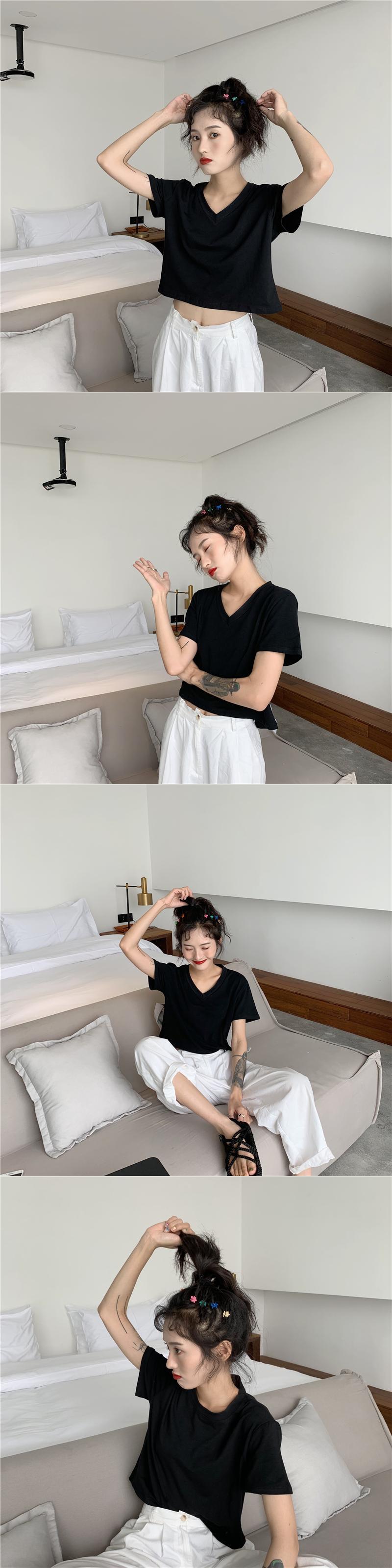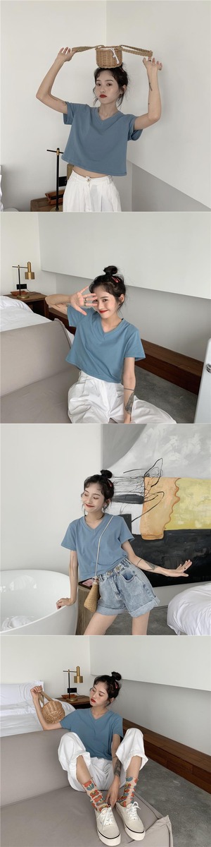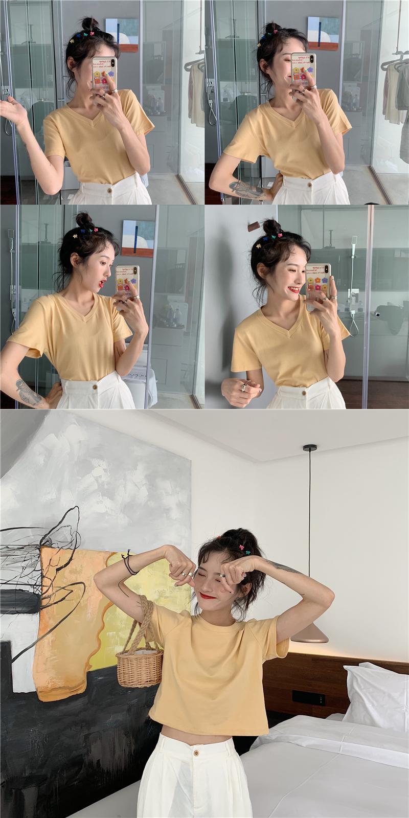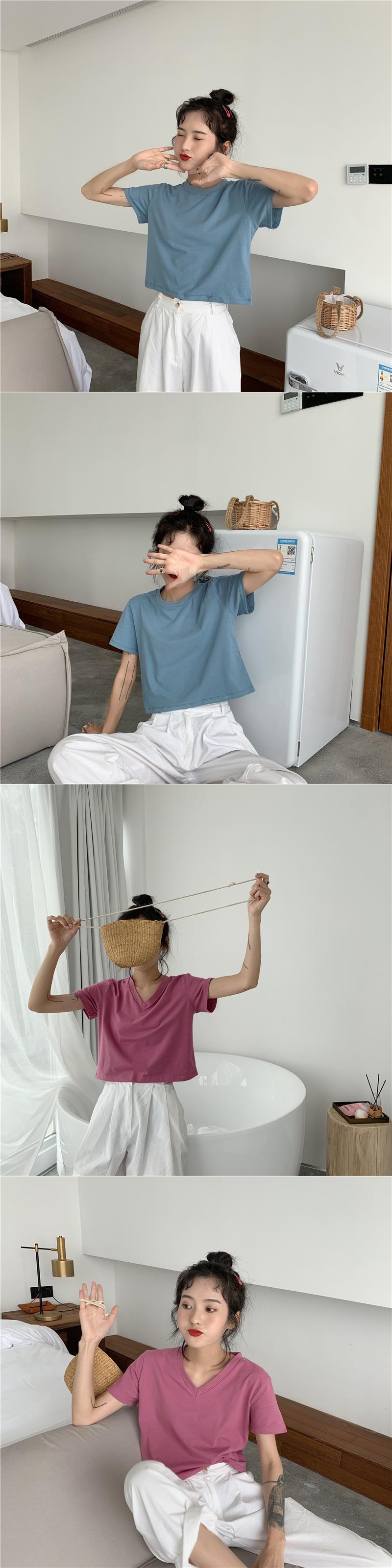 ソリッド カラーショートTシャツ 薄手オータムウィンタートップス 秋物 冬物 Oネック Vネック ソリッドカラー YY-ファッション16775893884