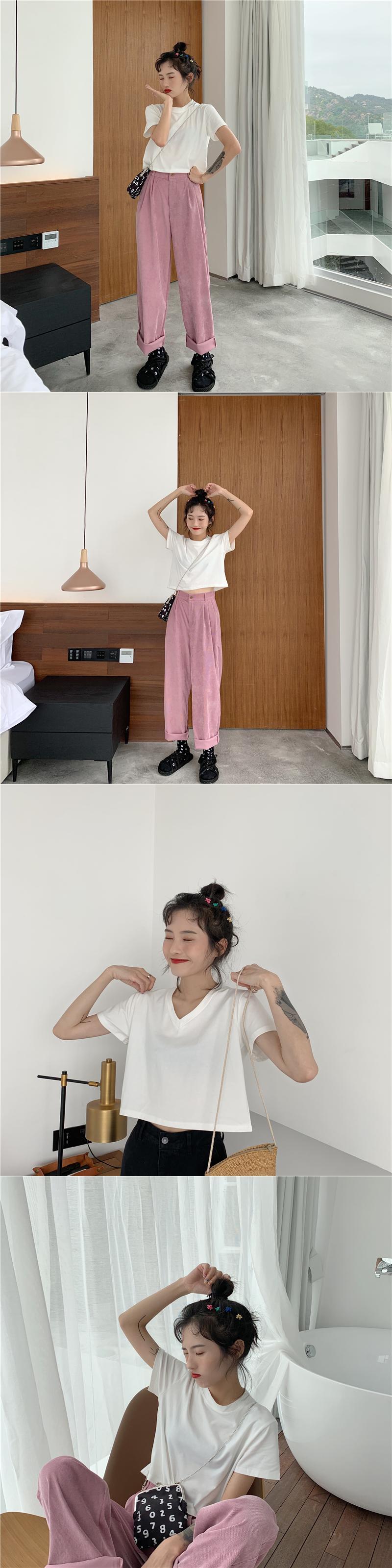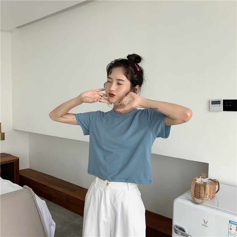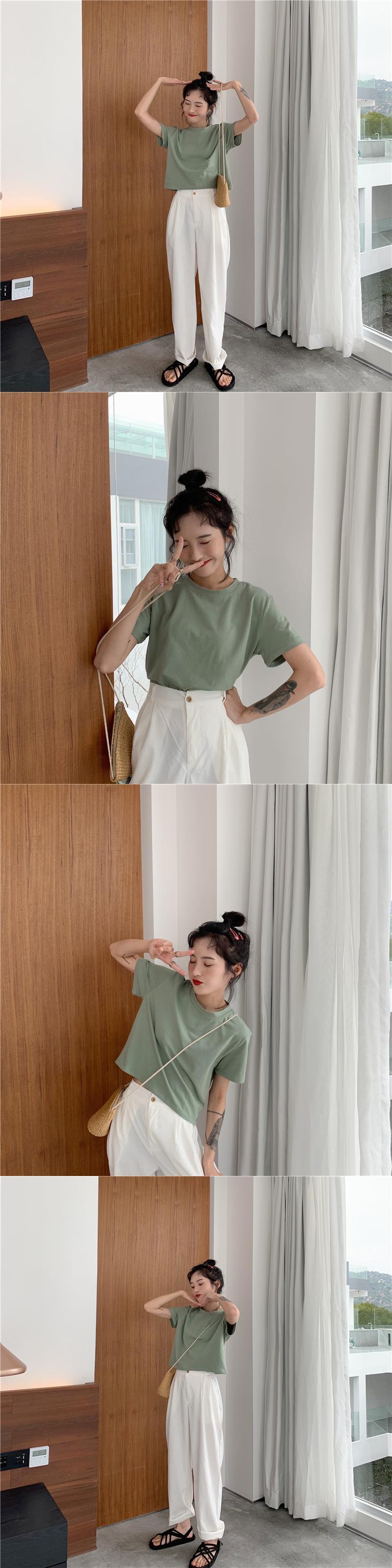 ソリッド カラーショートTシャツ 薄手オータムウィンタートップス 秋物 冬物 Oネック Vネック ソリッドカラー YY-ファッション16775893884