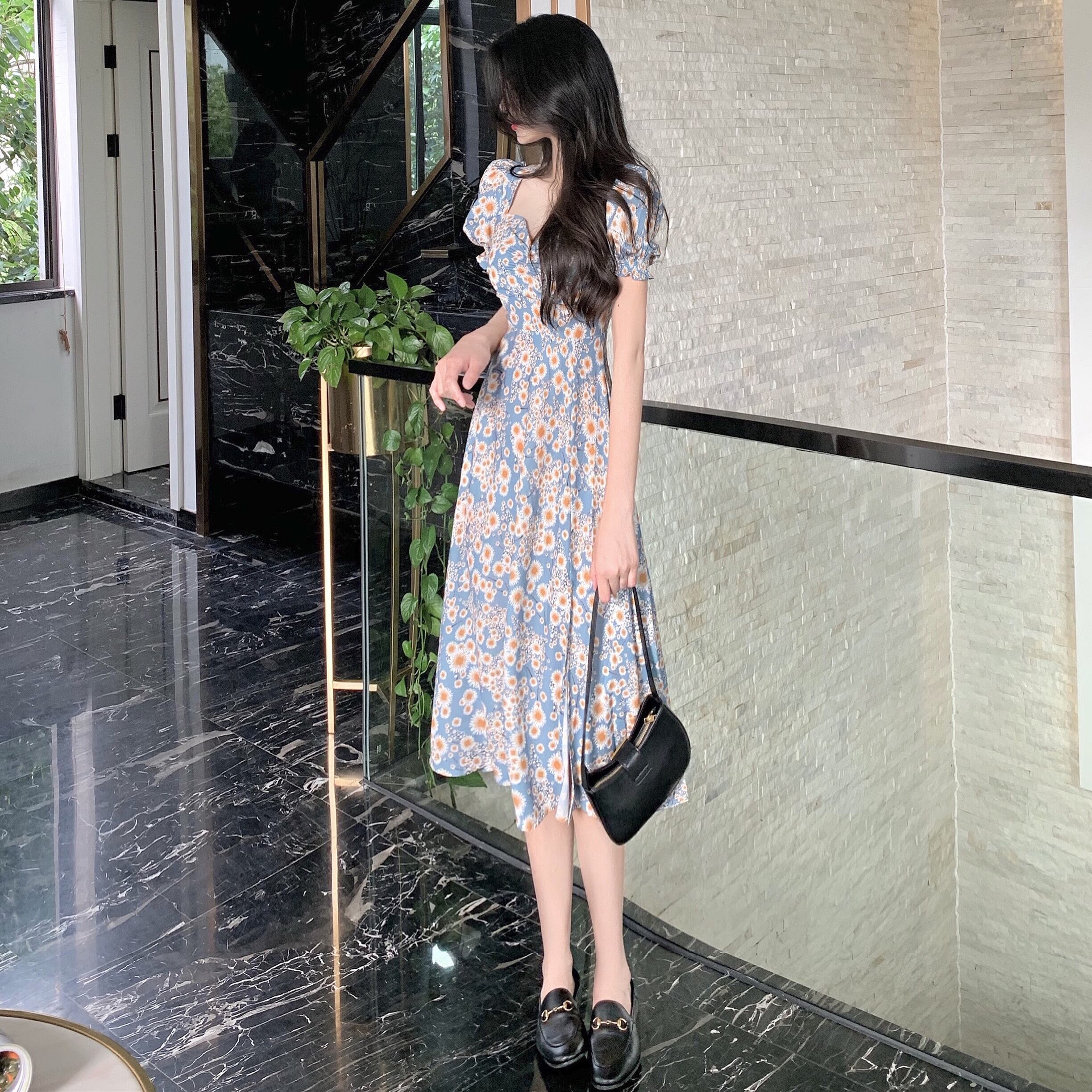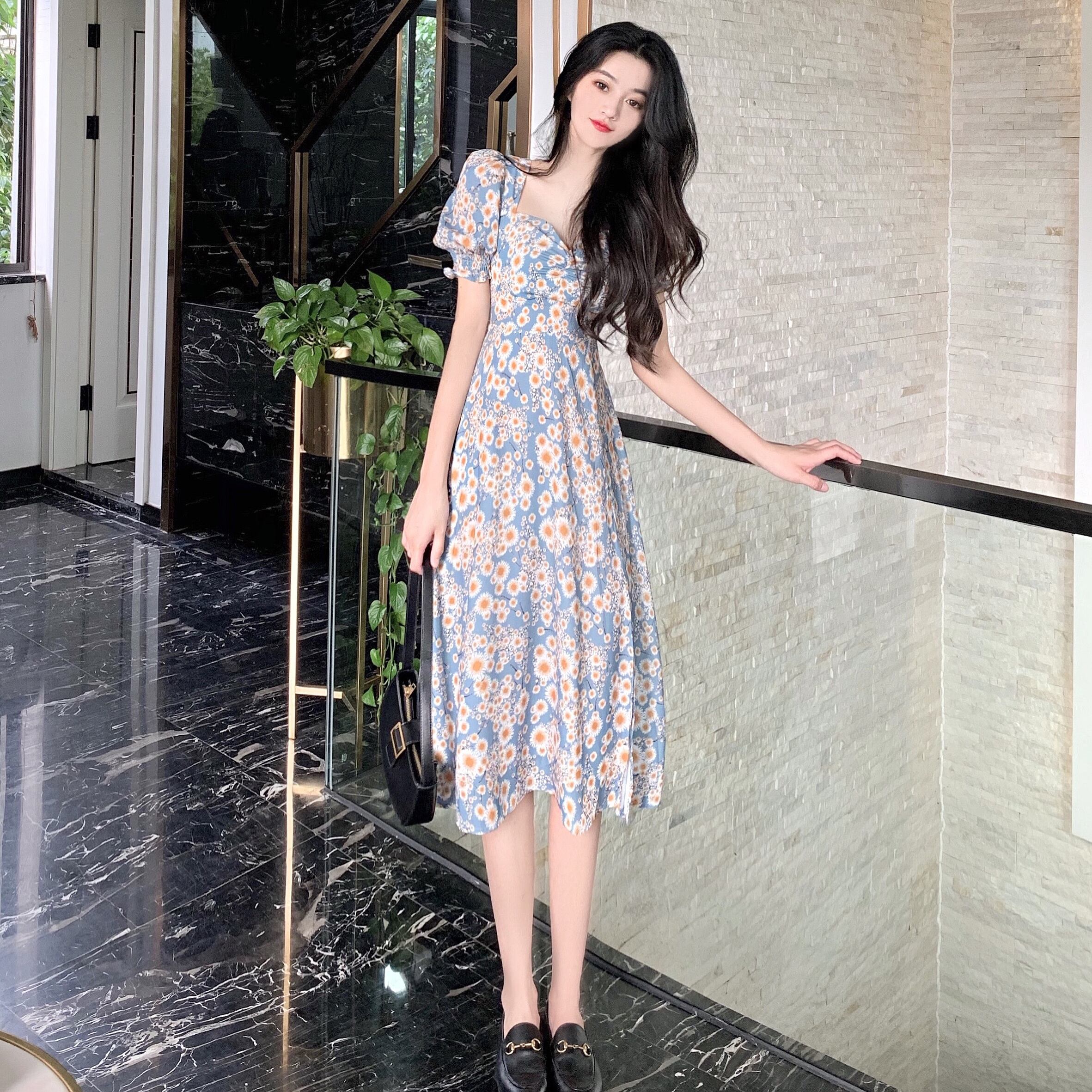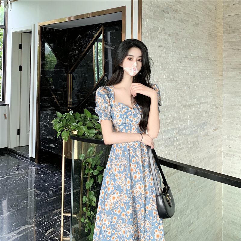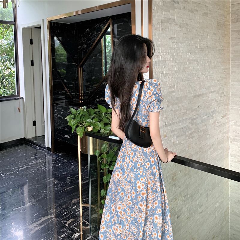 オータムスタンダードフローラルドレス ウェスト薄手Aラインスカート レトロ 秋物 花柄 YY-ファッション61769148782