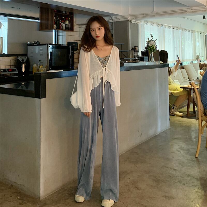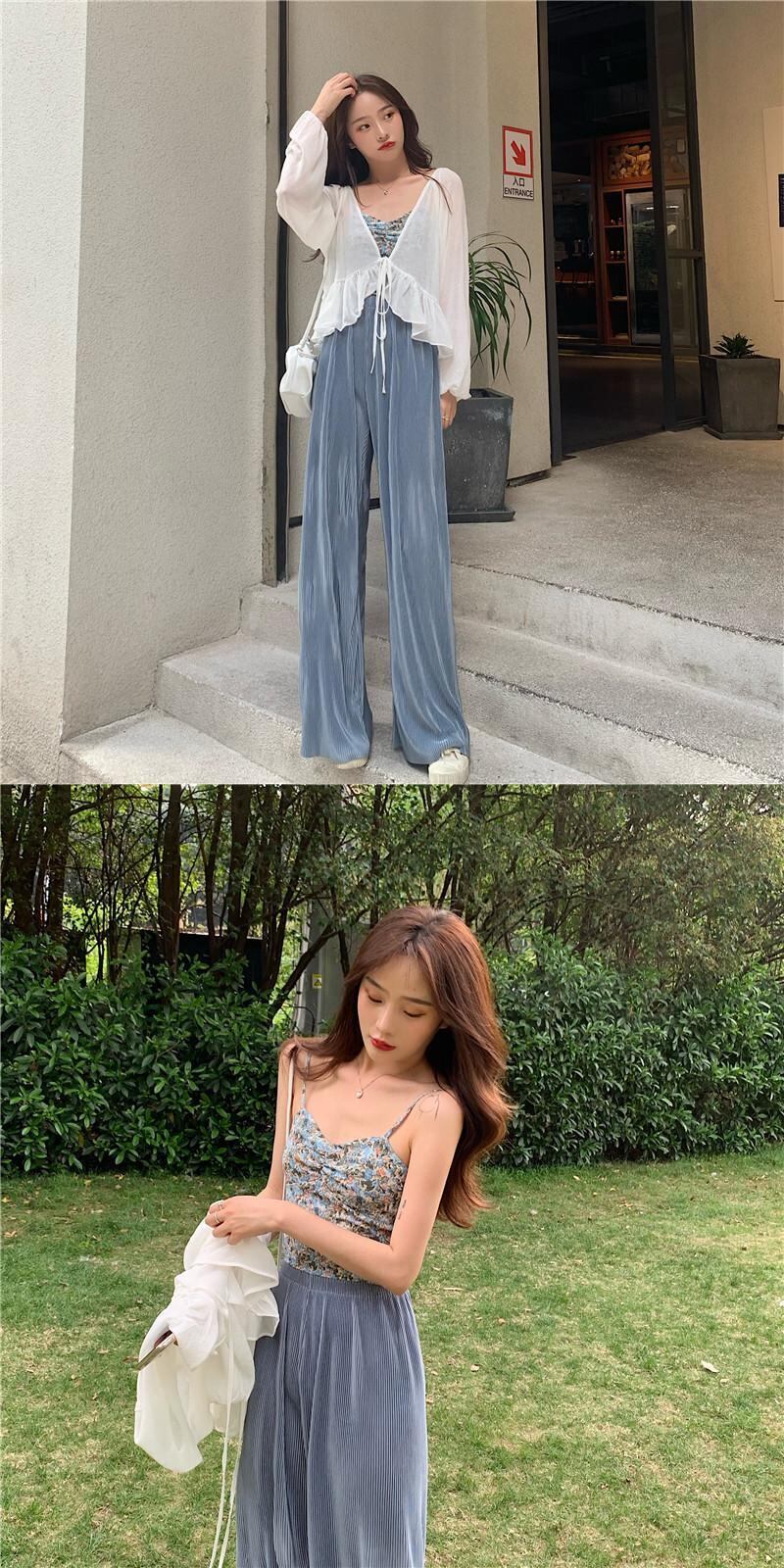 オータムウィンターシャツ フローラルハイウェストウェストワイドレッグパンツ 秋物 冬物 花柄 ワイドパンツ YY-ファッション82743330317