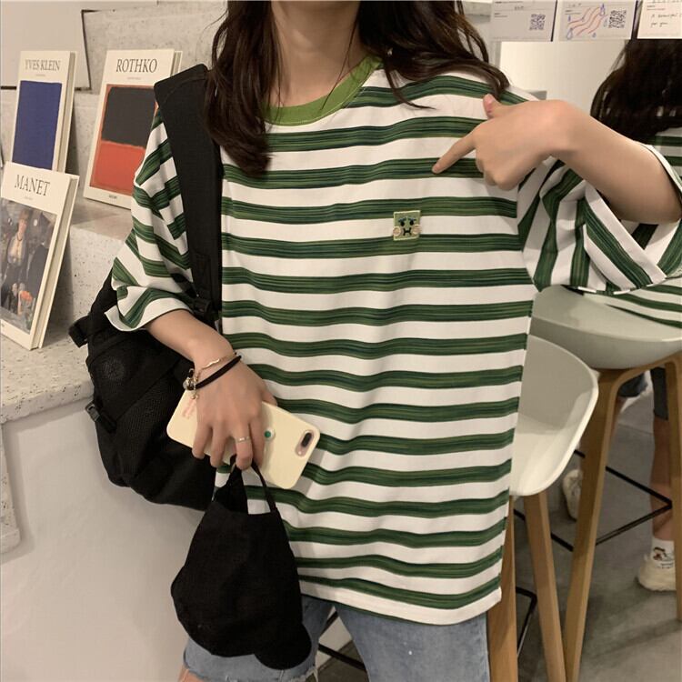 ルーズ薄手ストライプTシャツ レディースオータムウィンタートップス 秋物 冬物 YY-ファッション65939608766