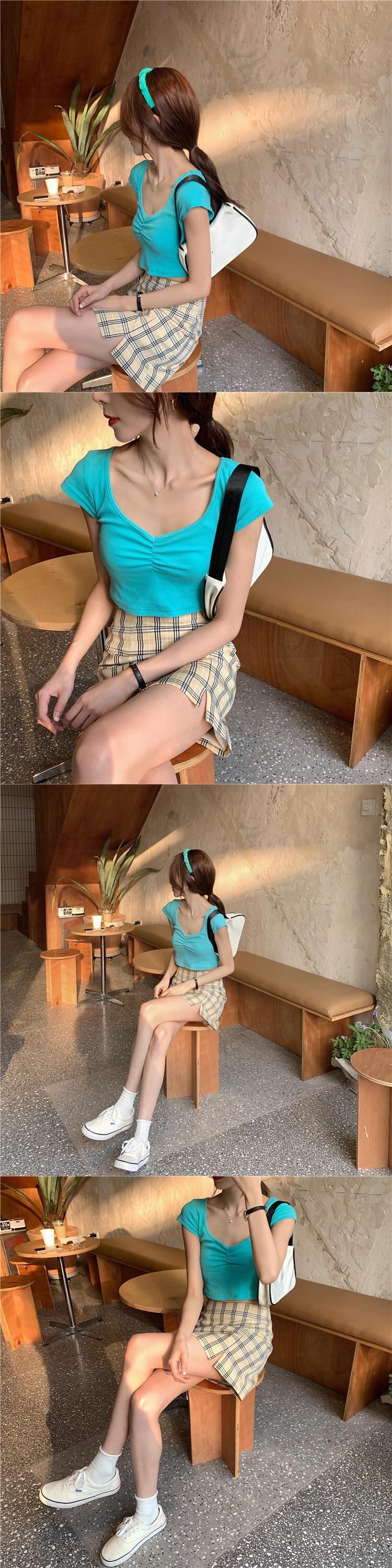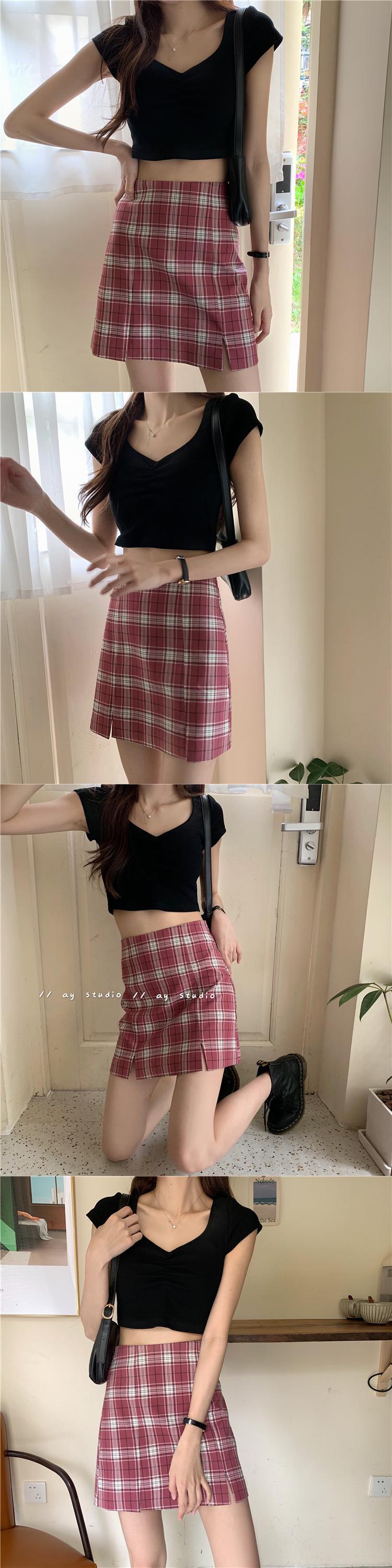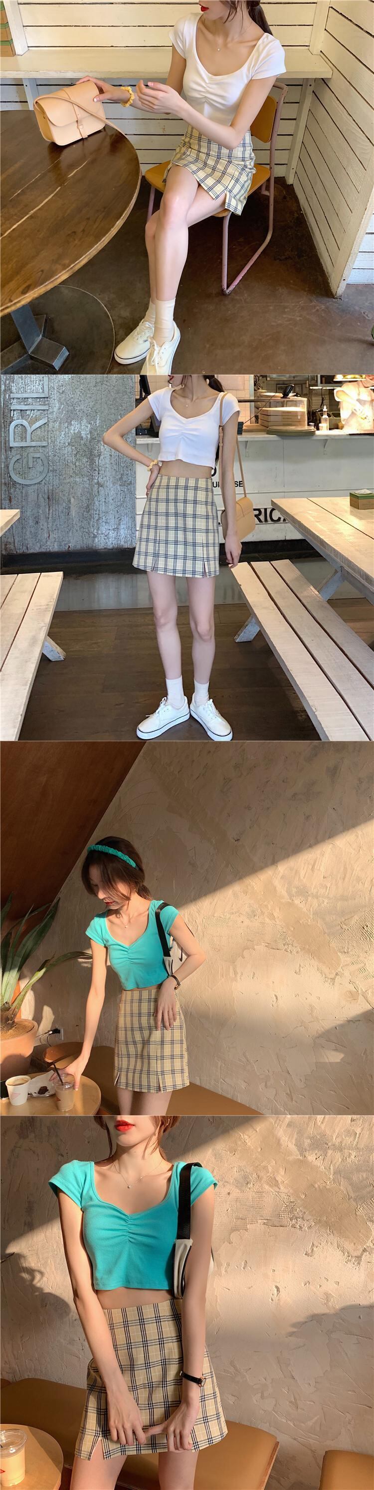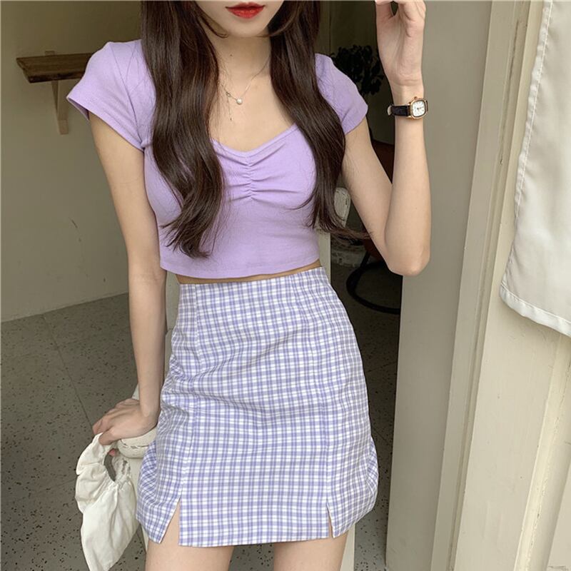 スリムショートクロップドTシャツ レディーススタイルスカート パープル YY-ファッション29704107356