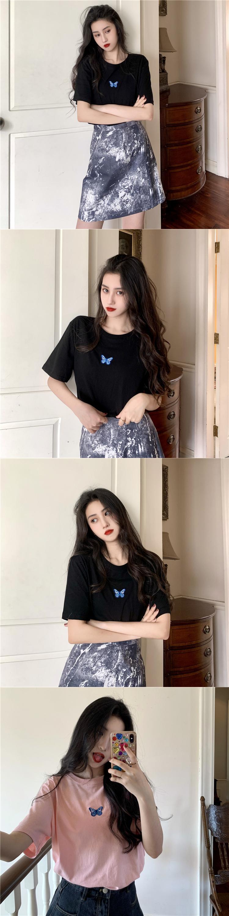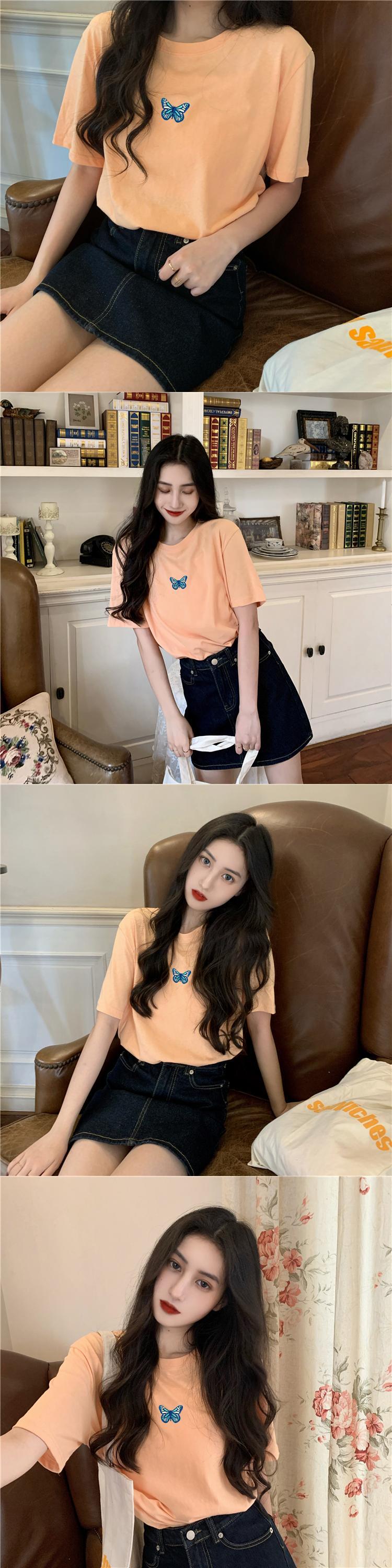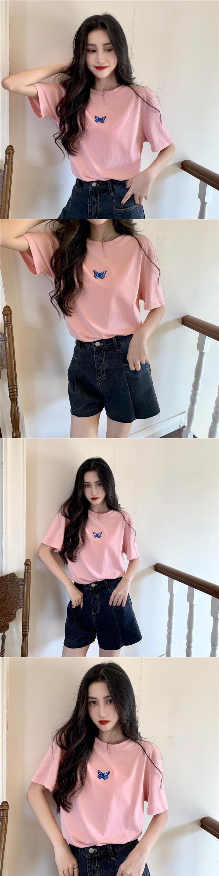 オータムウィンターレッドButterflyデザイン 刺繍Tシャツ レディースルーズトップス 秋物 冬物 YY-ファッション59842208630
