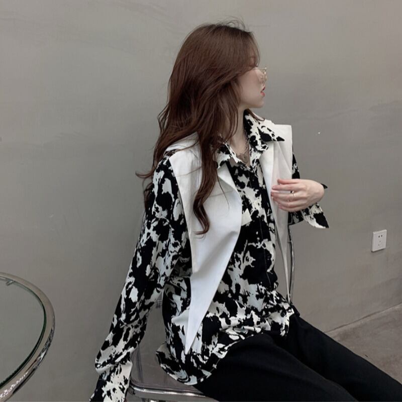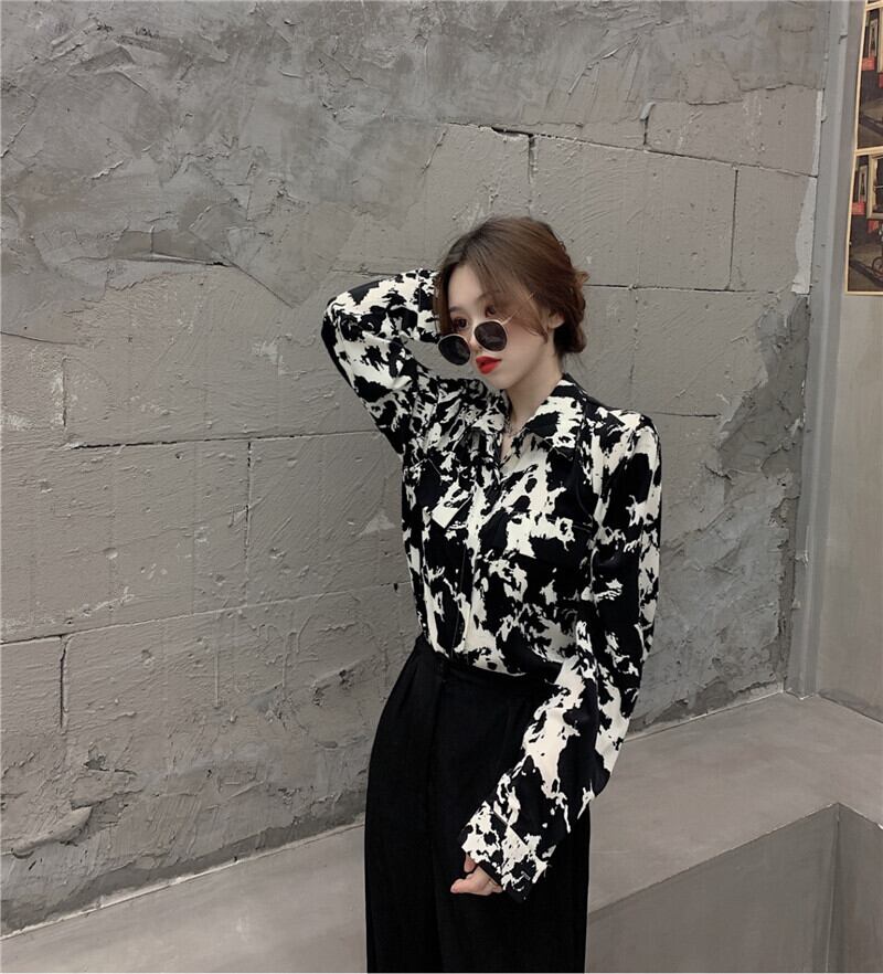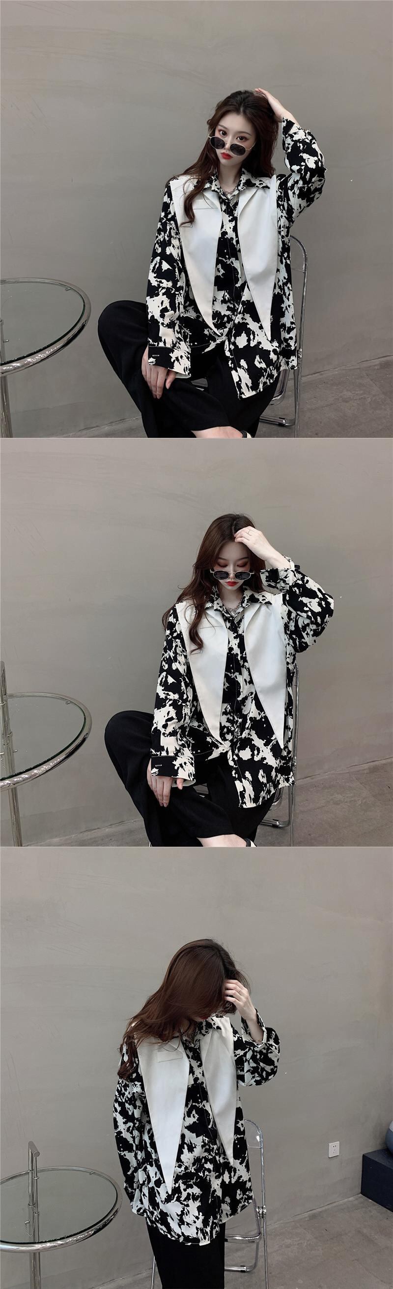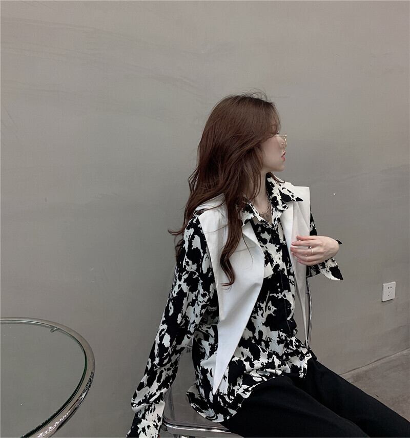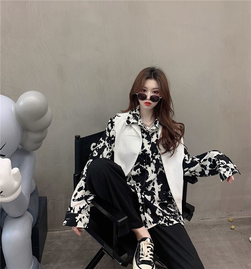 スプリングルーズプリントシャツ カジュアル ロング 春物 YY-ファッション72658836735
