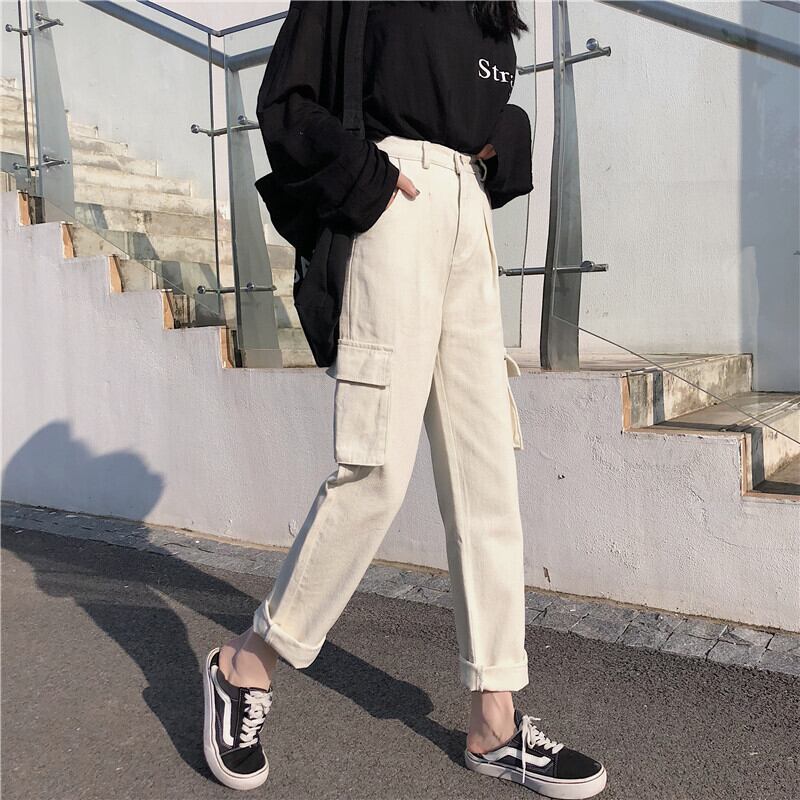 ルーズポケットパンツ ハイウェストウェストワイドレッグスプリング 春物 ワイドパンツ YY-ファッション7563803207