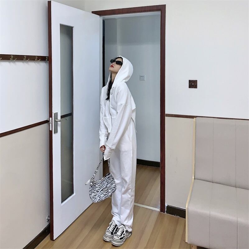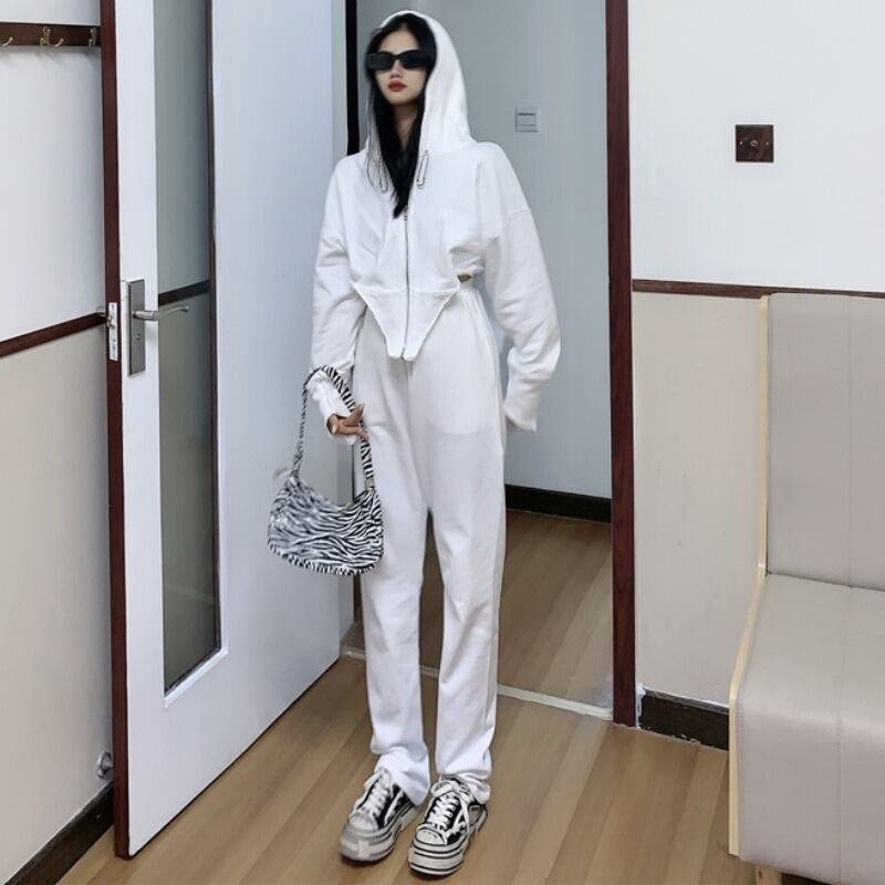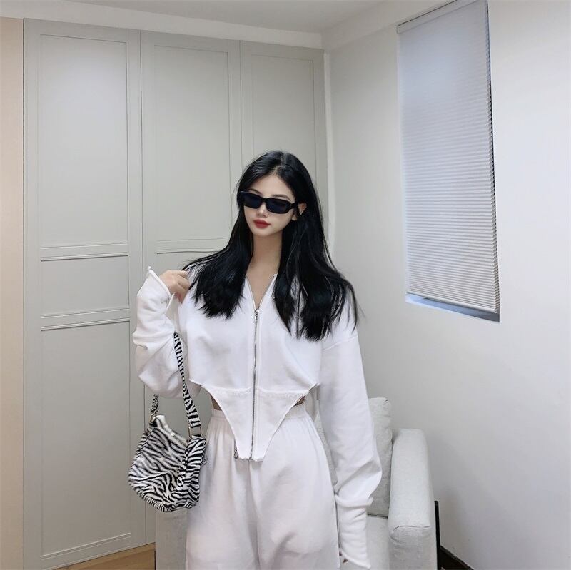 スプリングジッパーショートフードジャケット ソリッド カラーカジュアルパンツ レディース 春物 ソリッドカラー YY-ファッション2244420435