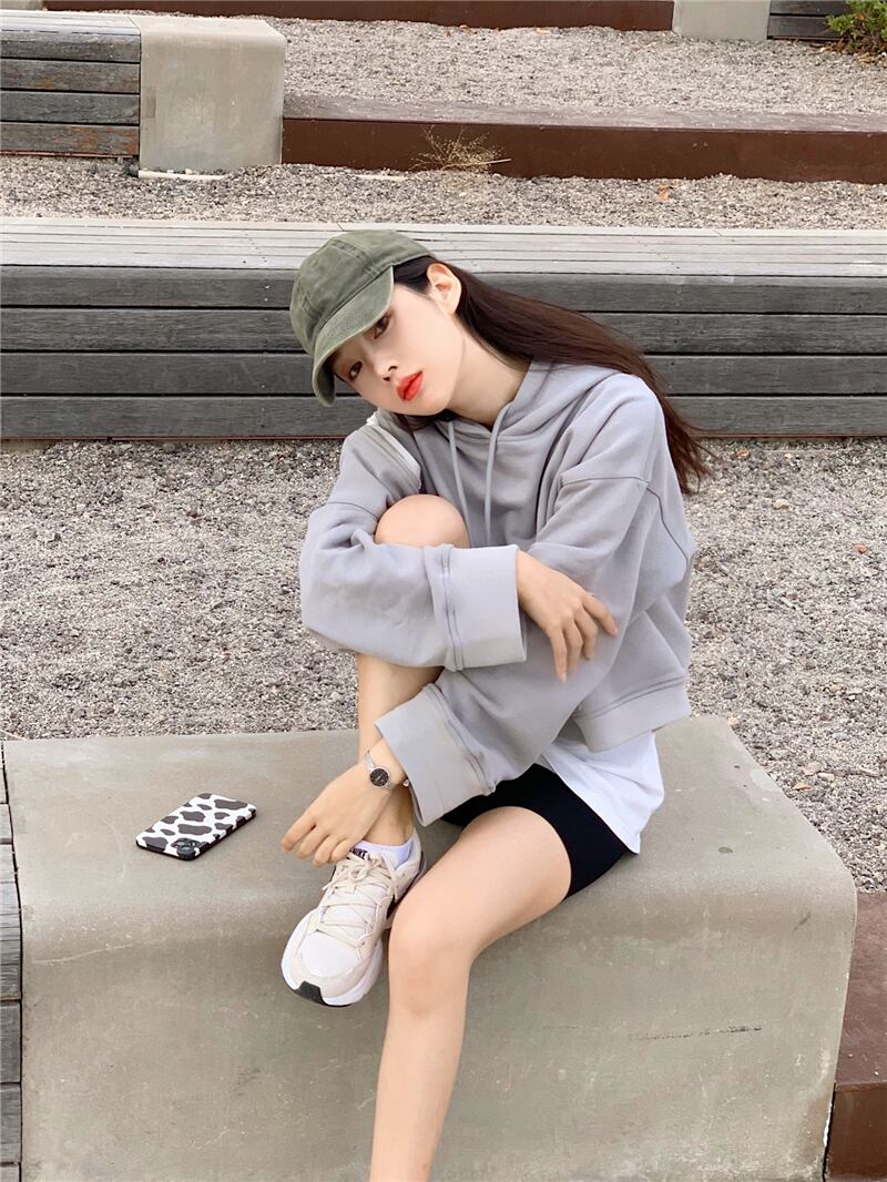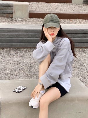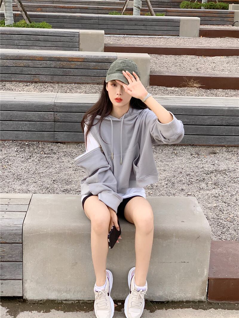 ショートフードセーター レディーススプリングルーズスリムトップス 春物 YY-ファッション7422809320
