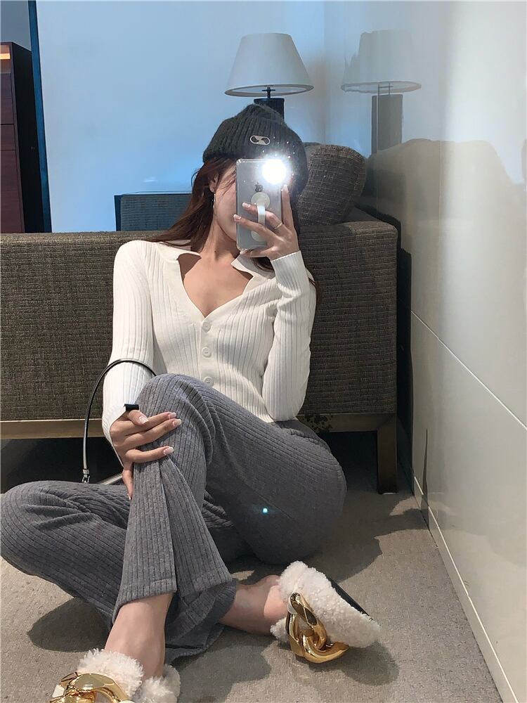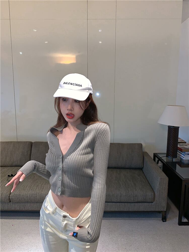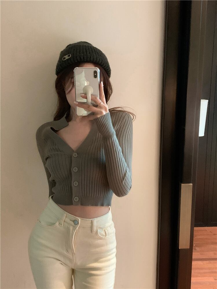 スリムスプリングカーディガントップス ソリッド カラーVネックTシャツ サイド長袖スリーブボタン ロング 春物 ソリッドカラー YY-ファッション55473255999