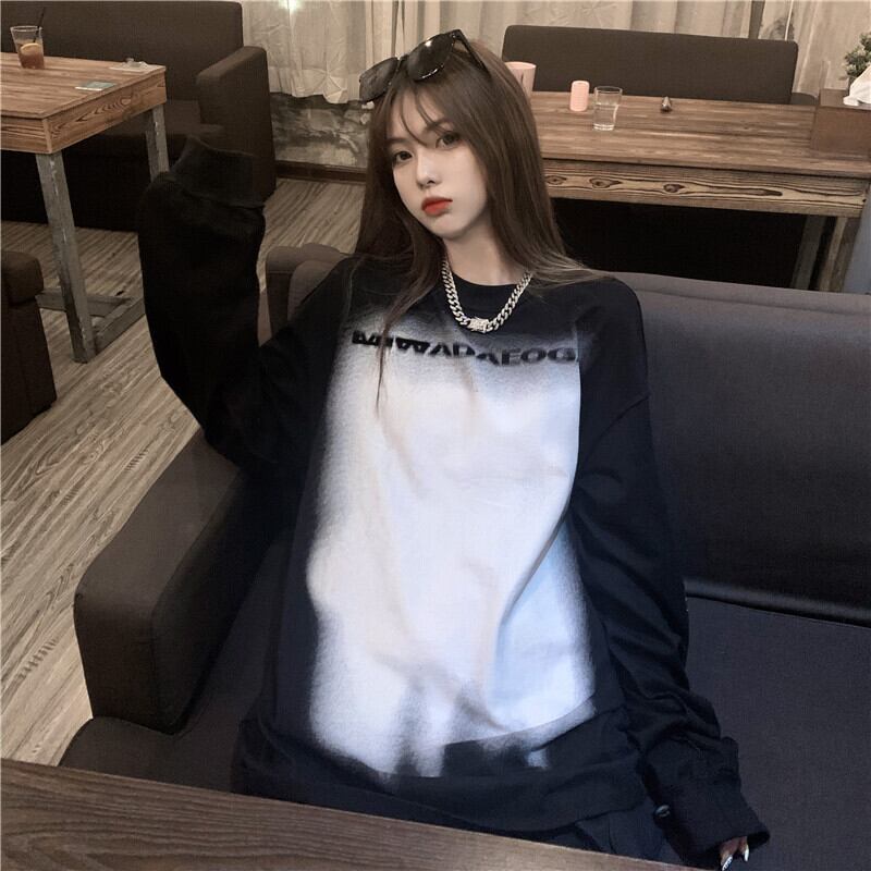 Tシャツ シャツ プリントスプリングルーズトップス ロング 春物 YY-ファッション78070971328