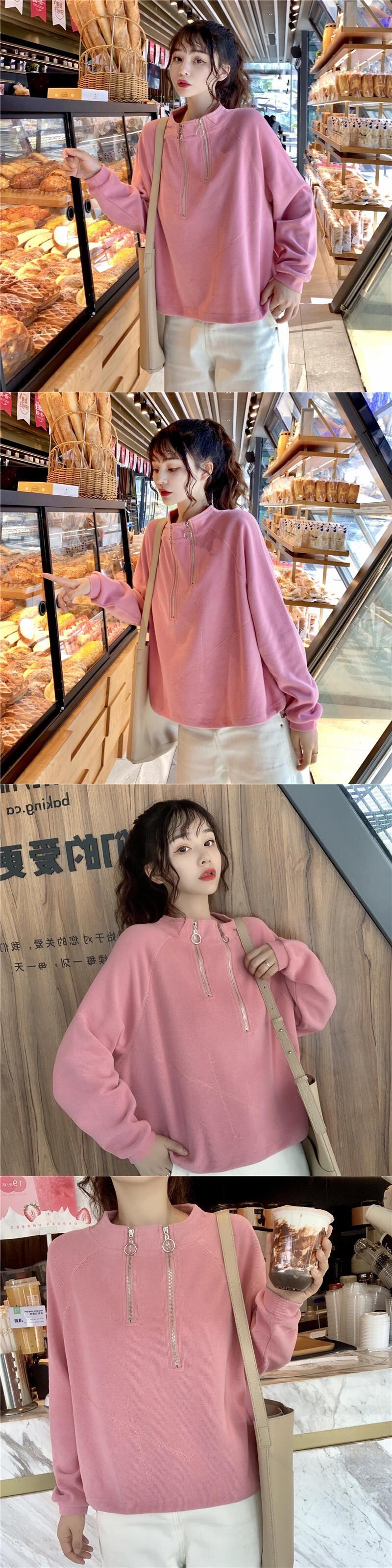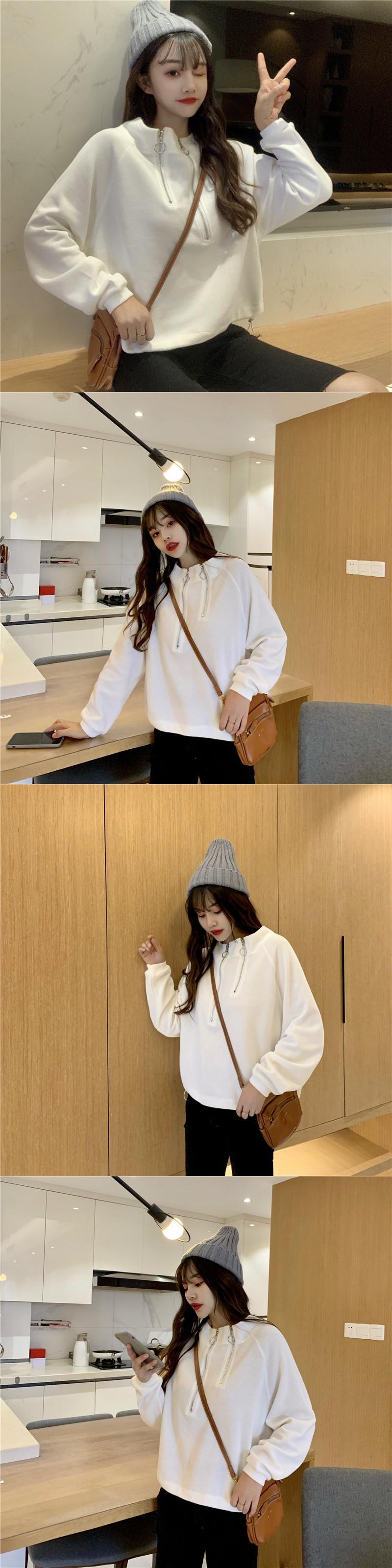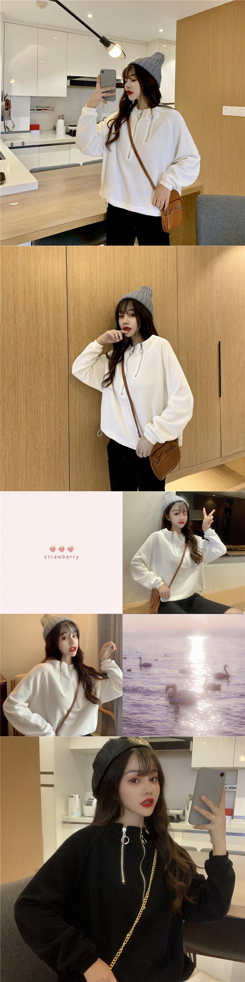 ジッパーショートセーター ルーズカラープルオーバー ギャザーウェストトップス YY-ファッション29421113282