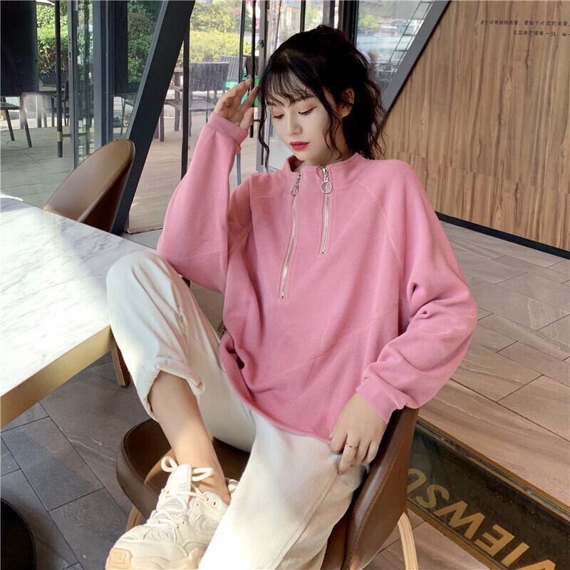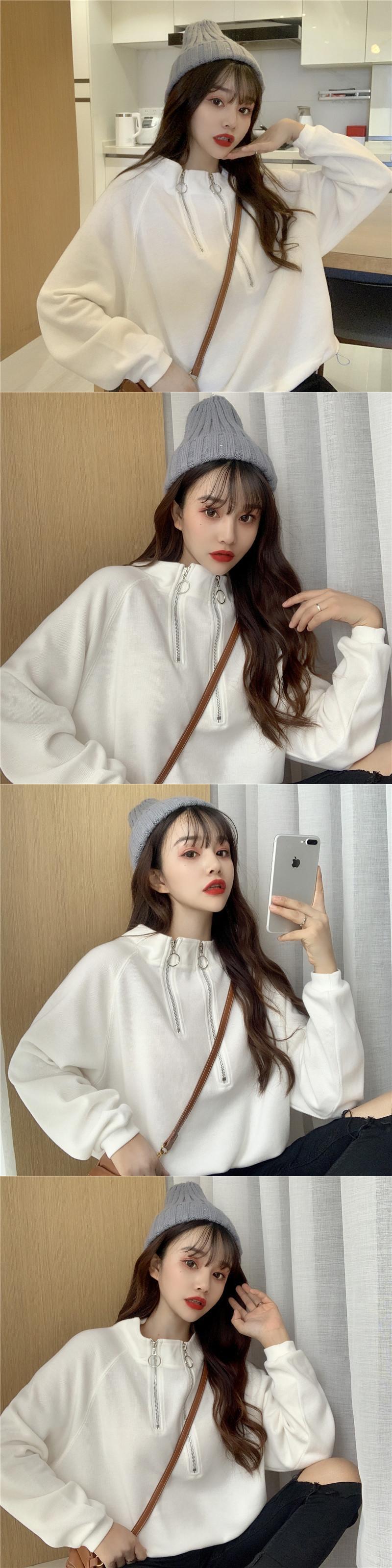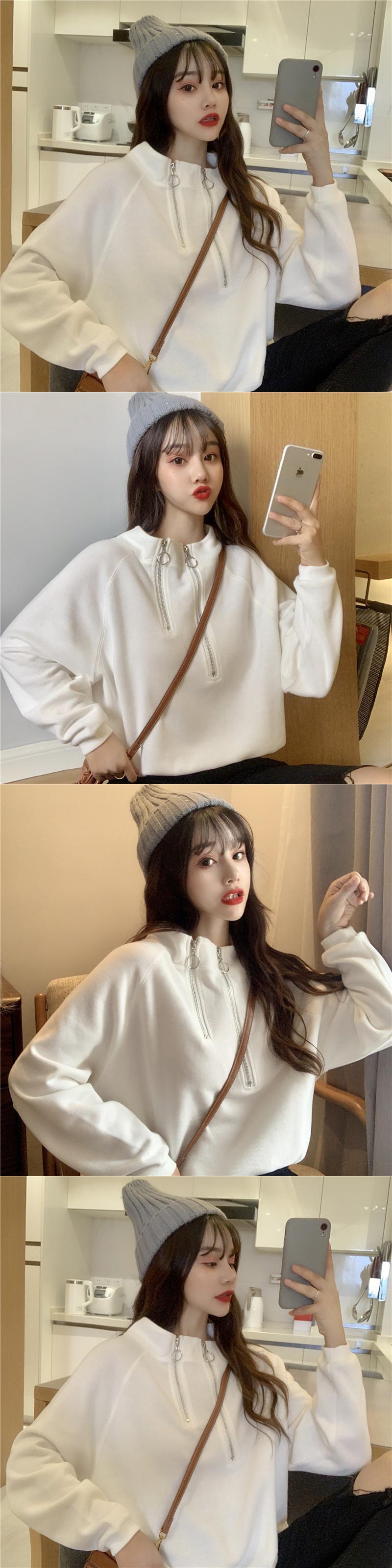 ジッパーショートセーター ルーズカラープルオーバー ギャザーウェストトップス YY-ファッション29421113282