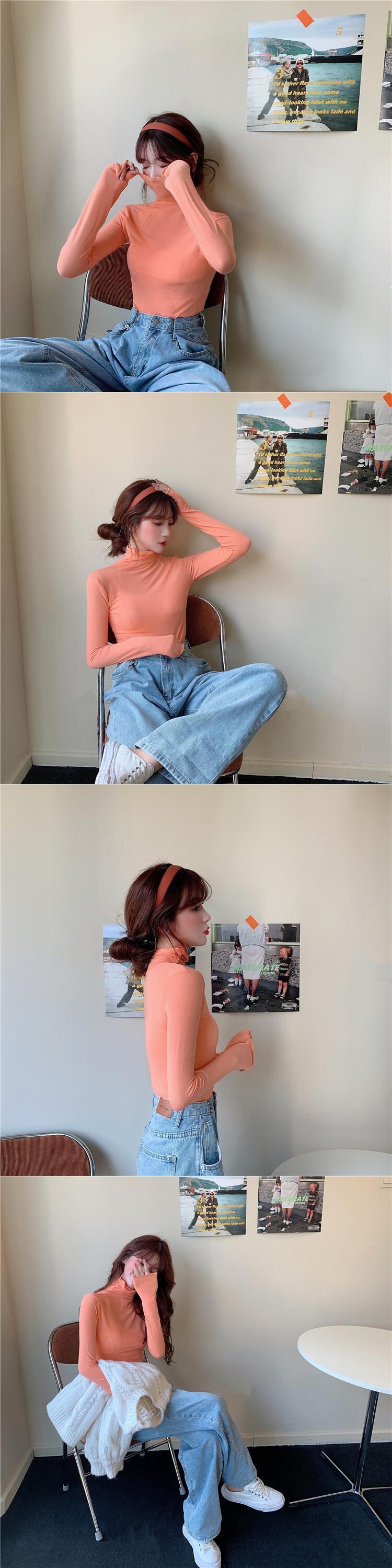カラーシャツ レディーススリムスタイル薄手レッドTシャツ トップス ロング YY-ファッション42877127710