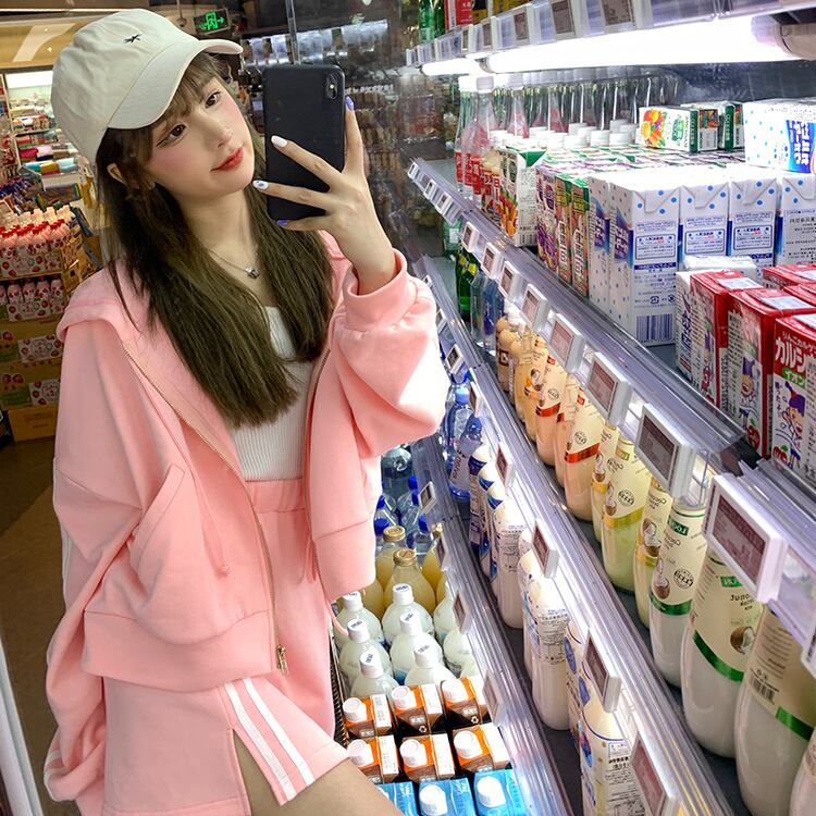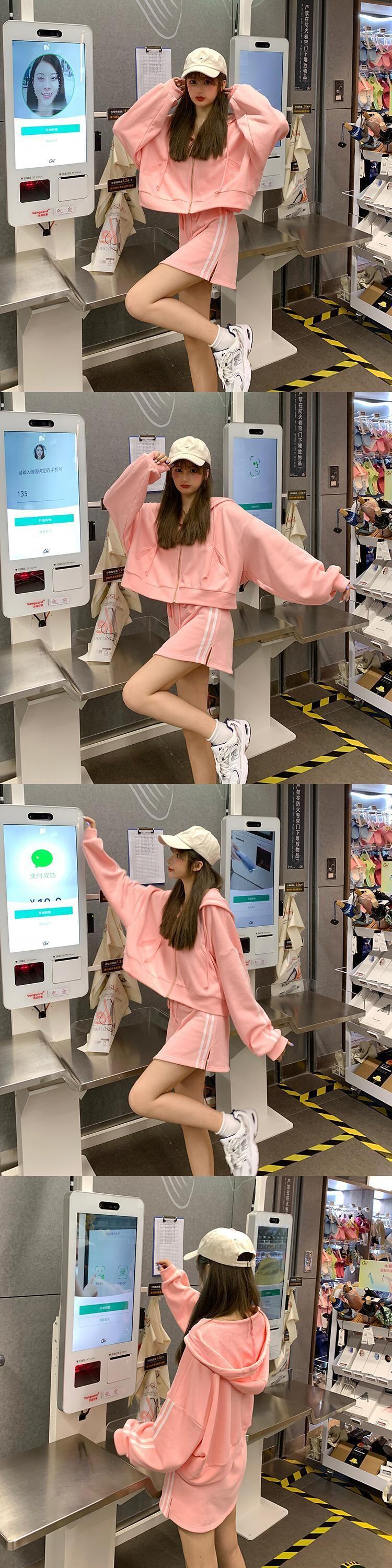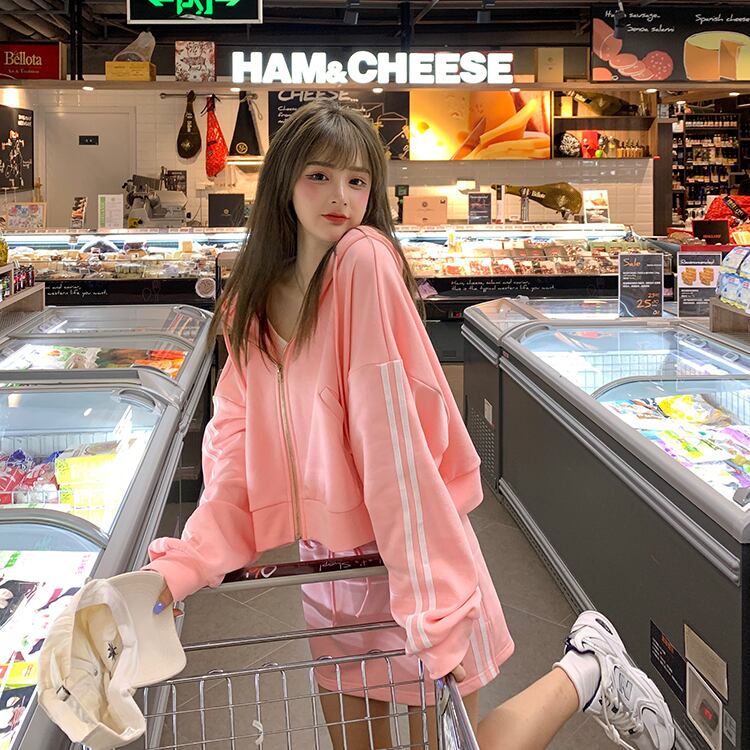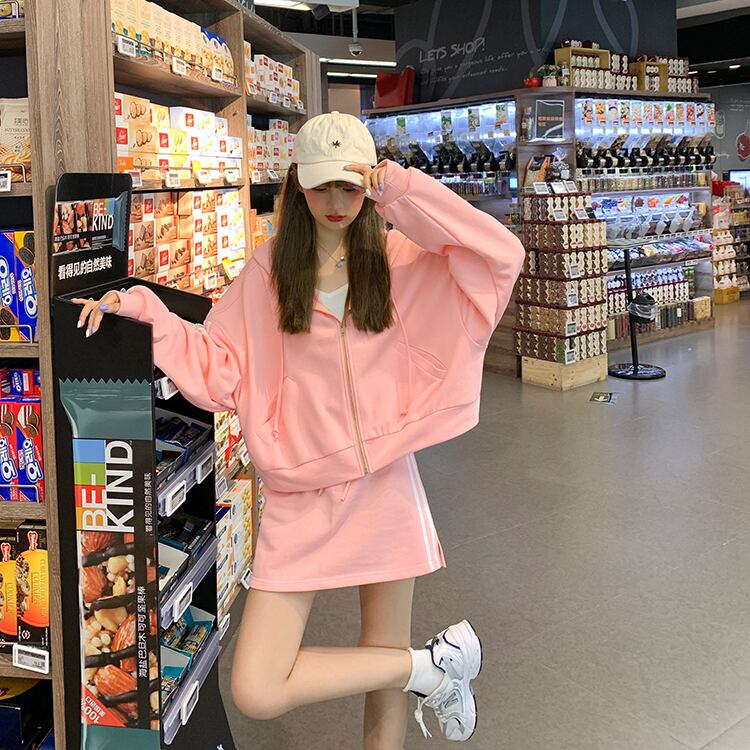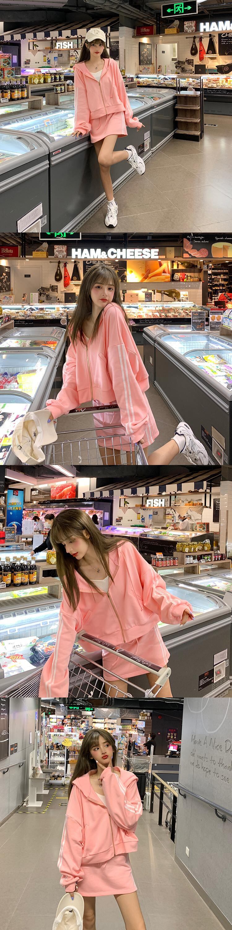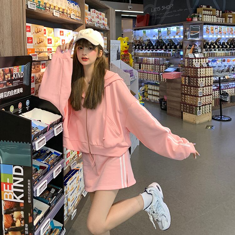 レディーススタイルフードプルオーバー セーター スリットストライプギャザーストレッチウェストスカート エラスティック 伸縮 YY-ファッション67076788349