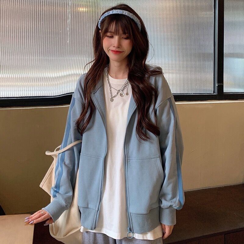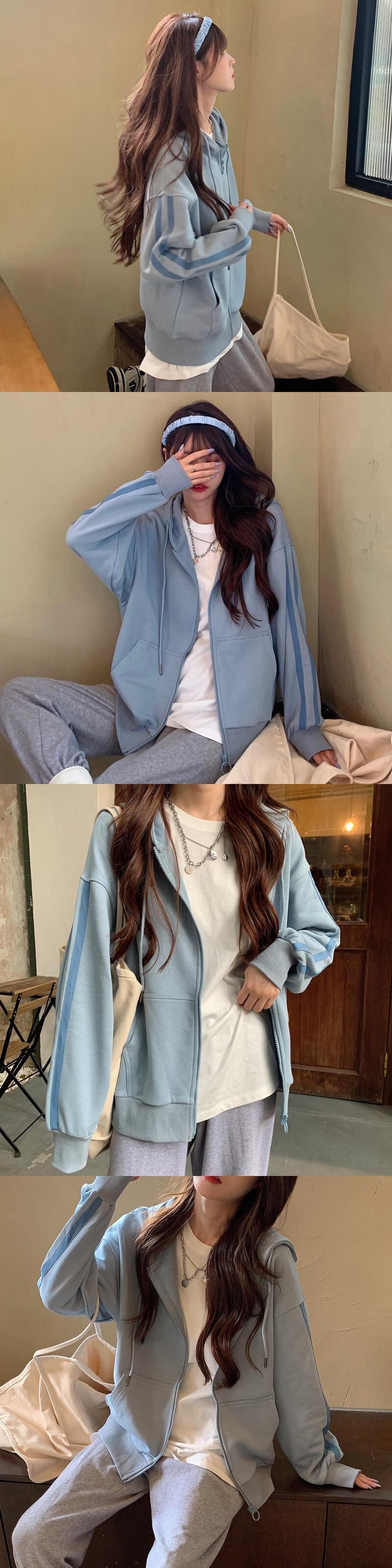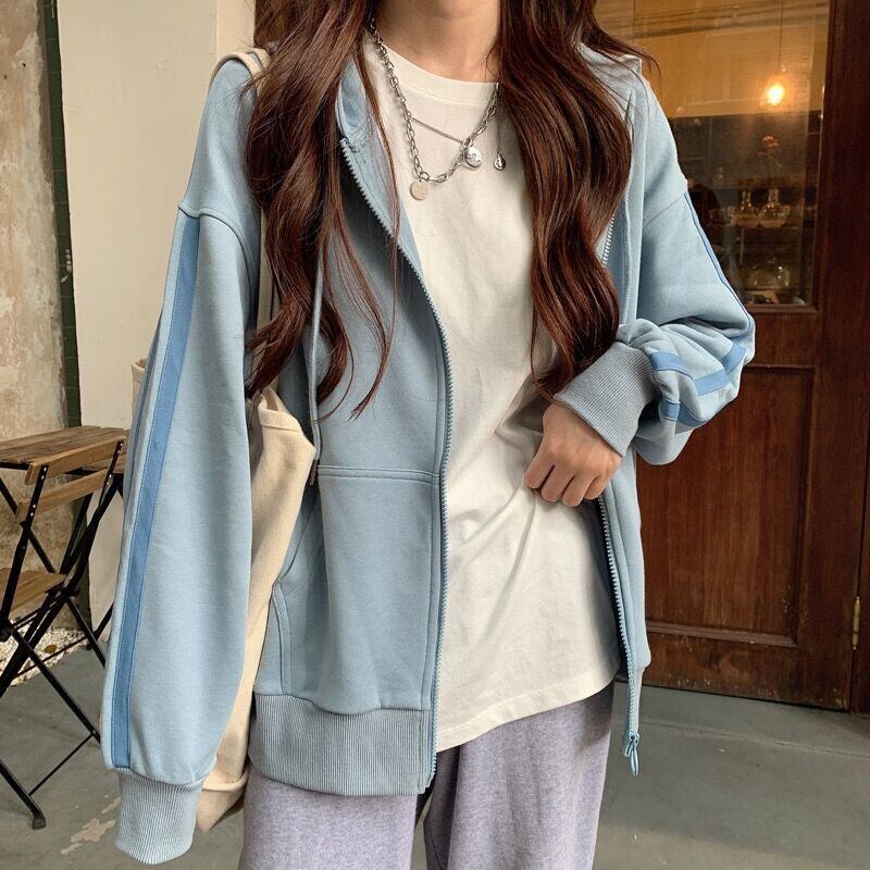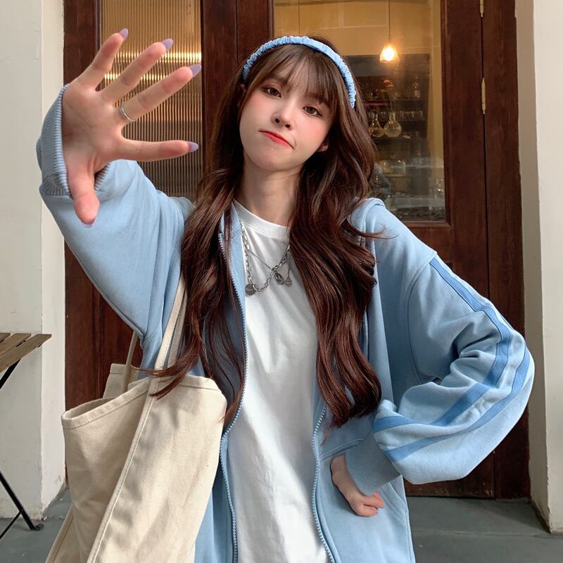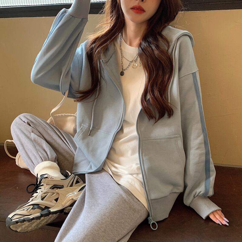 セーター スプリングオータムルーズ薄手ストライプジッパーフードカーディガン長袖スリーブトップス ロング 春物 秋物 YY-ファッション69550905914