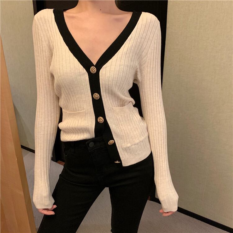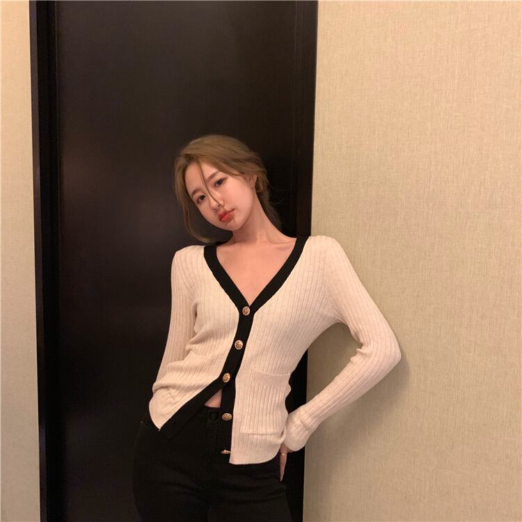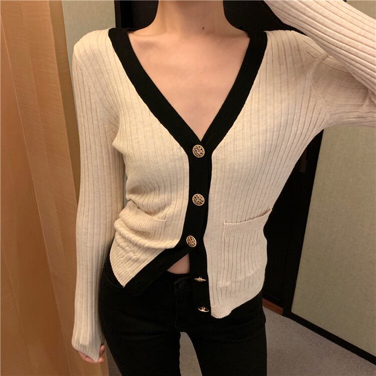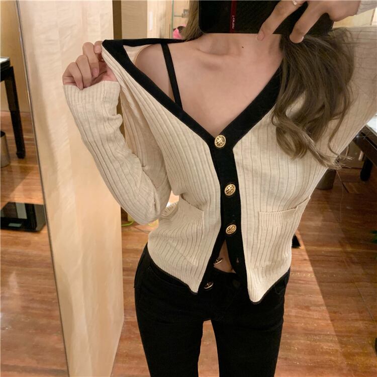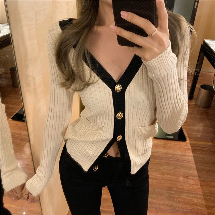 ブラウス スプリングカラーストライプスリムニットカーディガン 春物 YY-ファッション14463453721