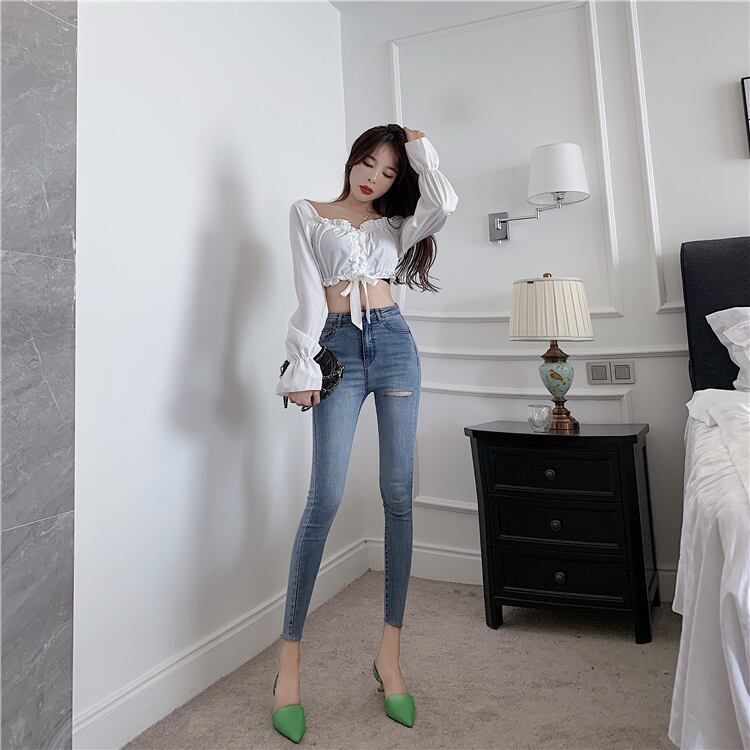 ハイウェストジーンズ スリムパンツ ロングオータムレディース 秋物 YY-ファッション7136186704