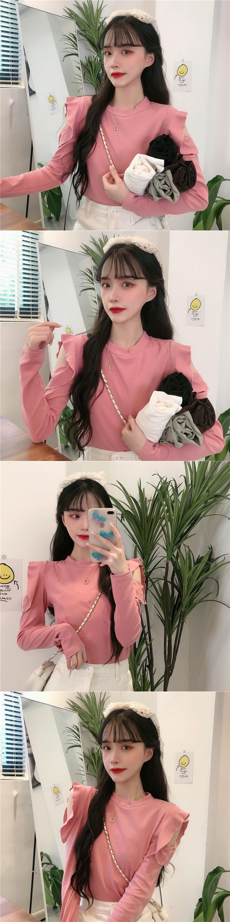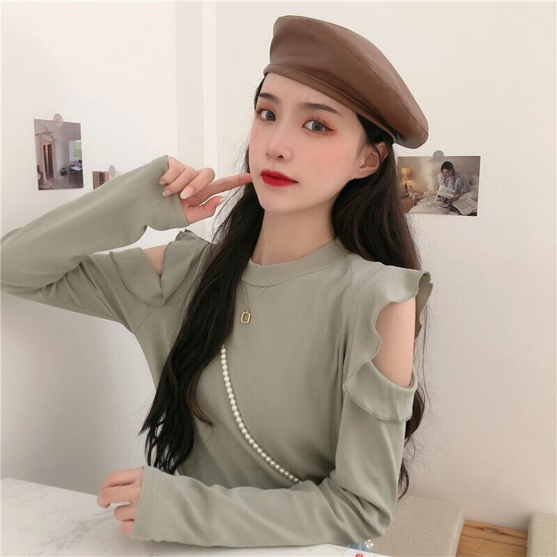ソリッド カラーTシャツ シャツ レディーススプリングスタイルルーズトップス ロング 春物 オフショルダー ソリッドカラー YY-ファッション65489986719