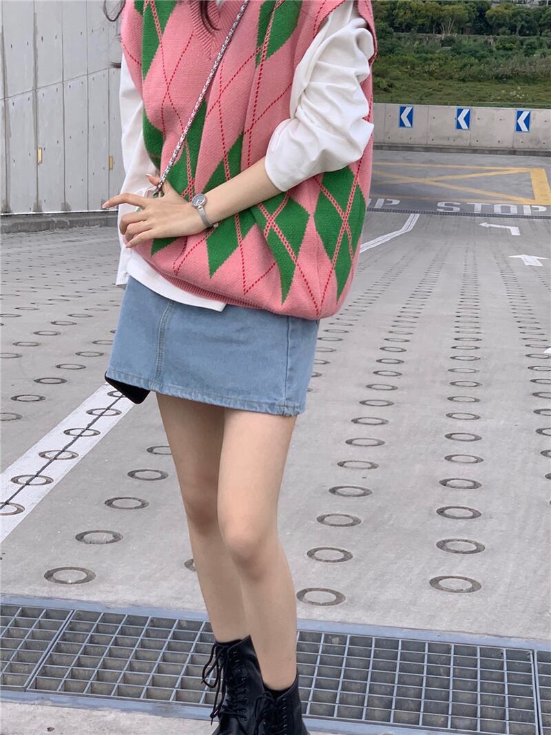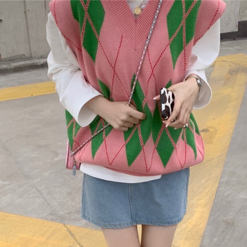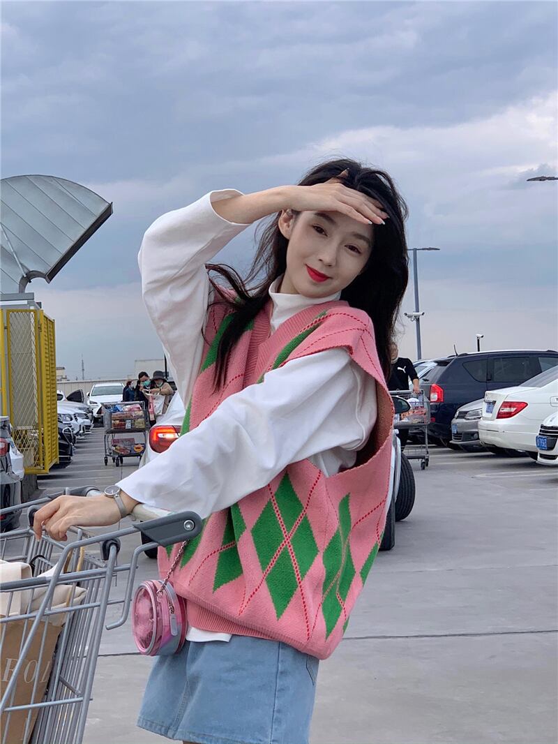色:ホワイトボトミングシャツ,ピンクのベスト